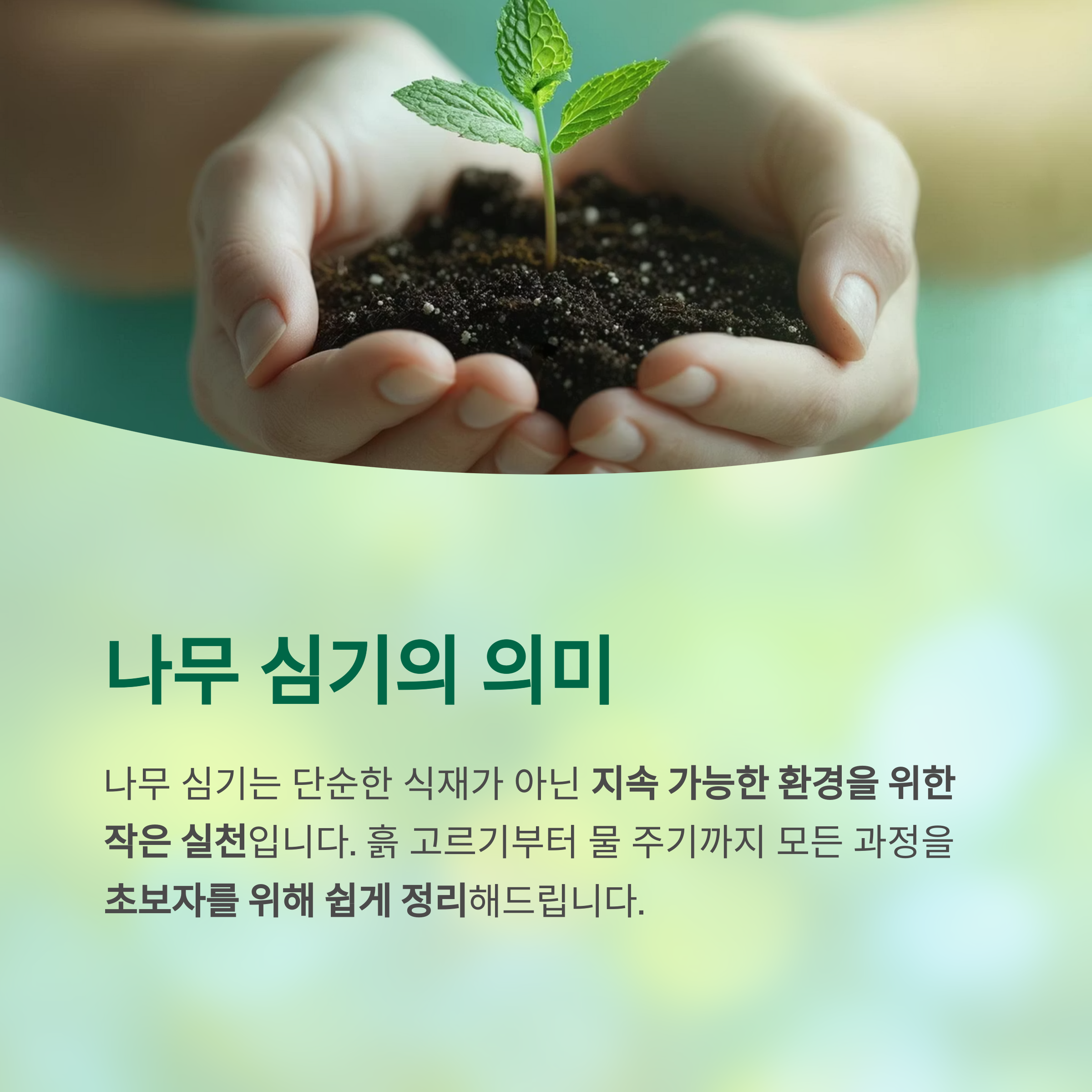 나무를 심는 일은 단순한 식재가 아니라 지속 가능한 환경을 위한 작은 실천입니다.