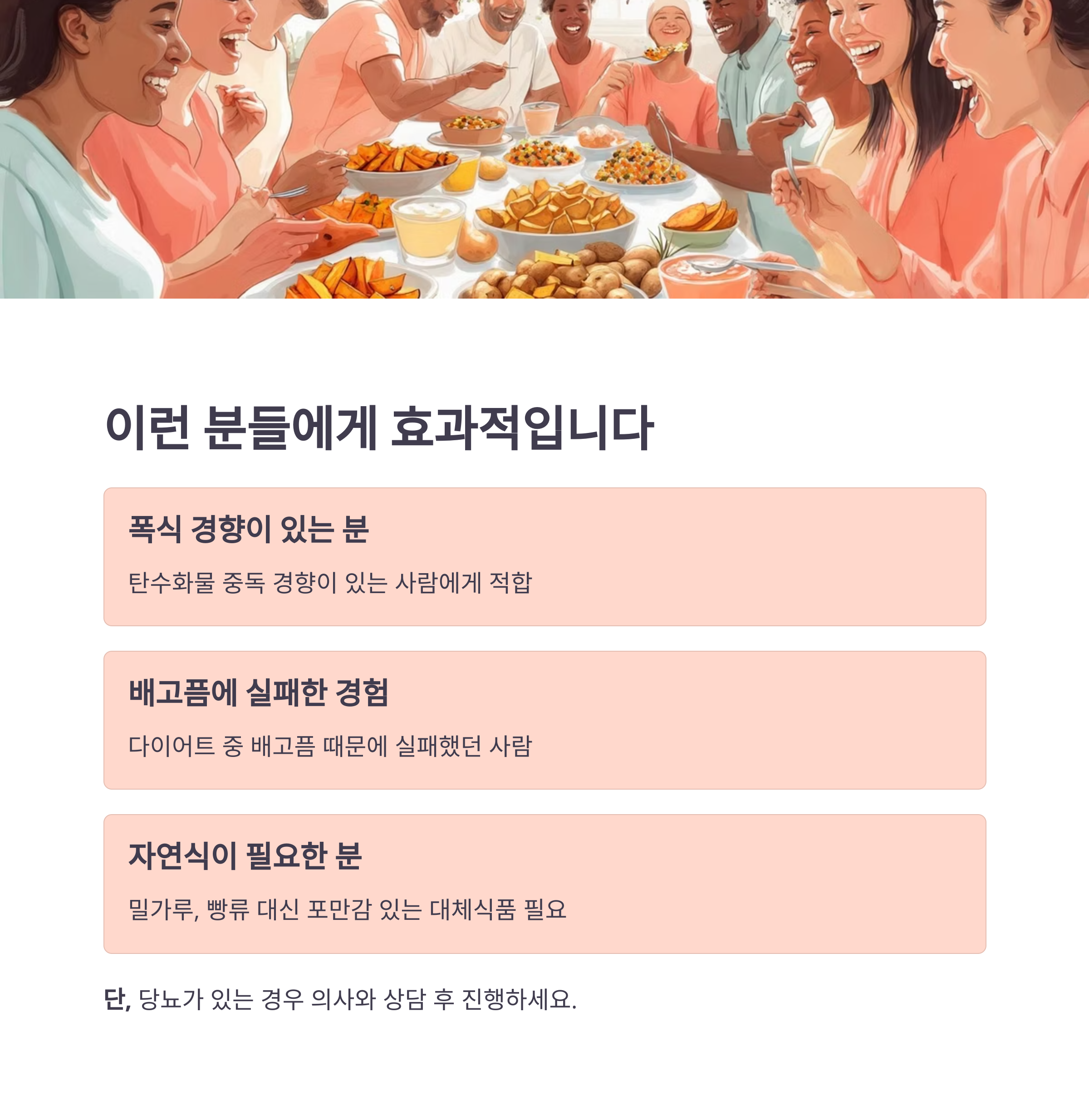 - 밀가루, 빵류 대신 포만감 있는 자연식이 필요한 사람