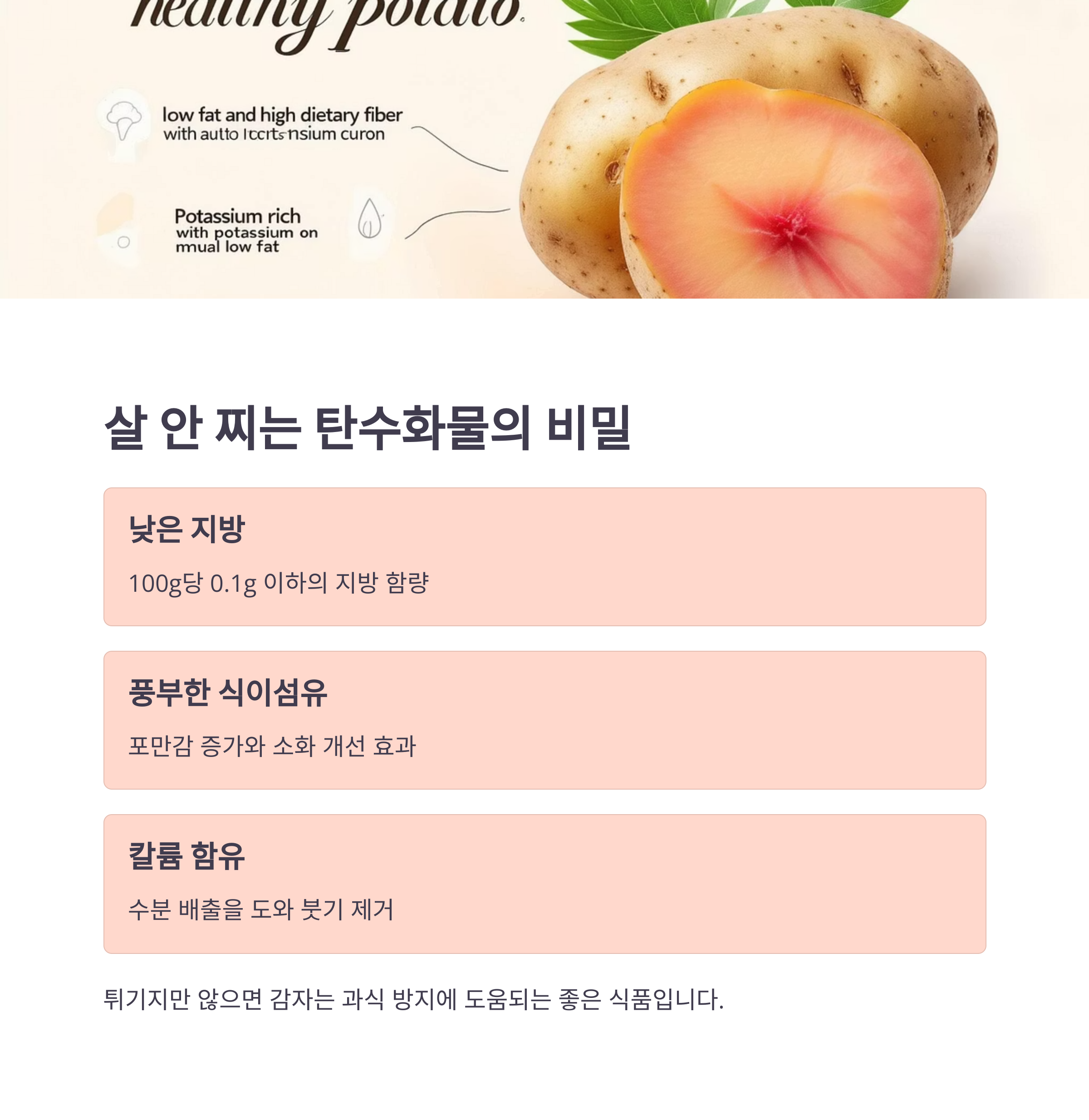 감자는 제대로 먹으면 **‘살찐다’가 아니라 ‘살 빠진다’**로 바뀔 수 있습니다.
