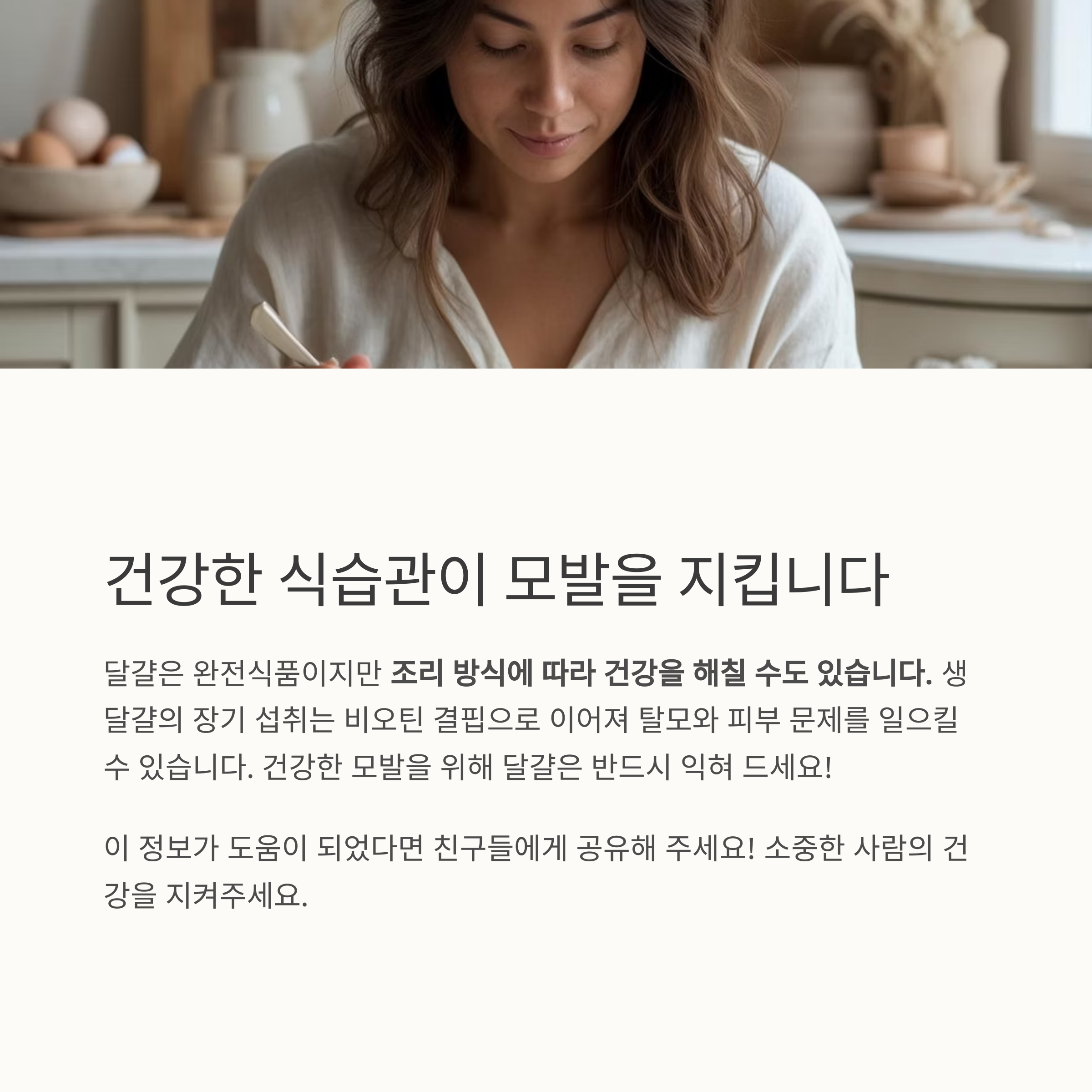 생달걀 매일 먹는 습관, 비오틴 결핍으로 모발에 치명타 줄 수 있습니다