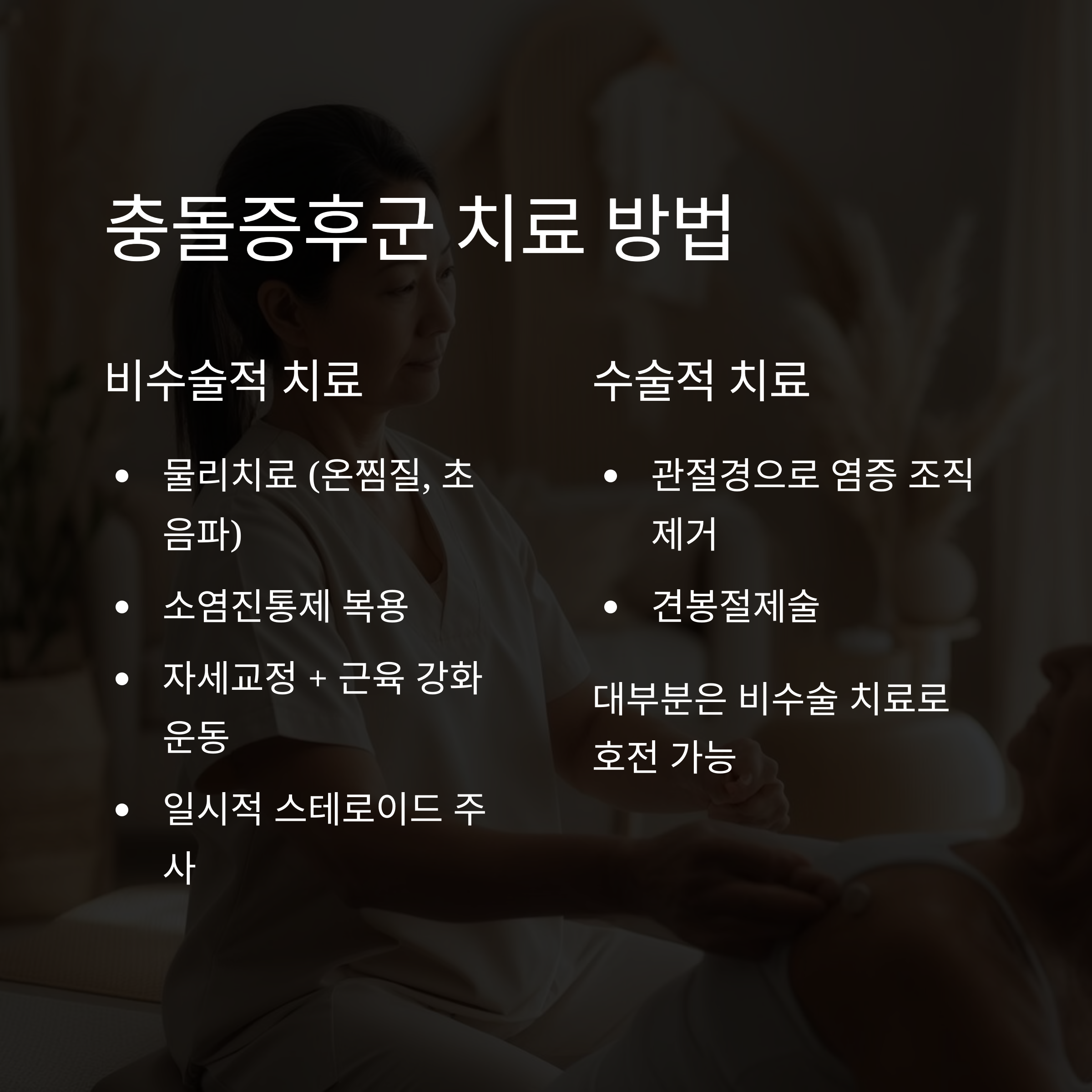 - 대부분은 비수술 치료로 호전 가능