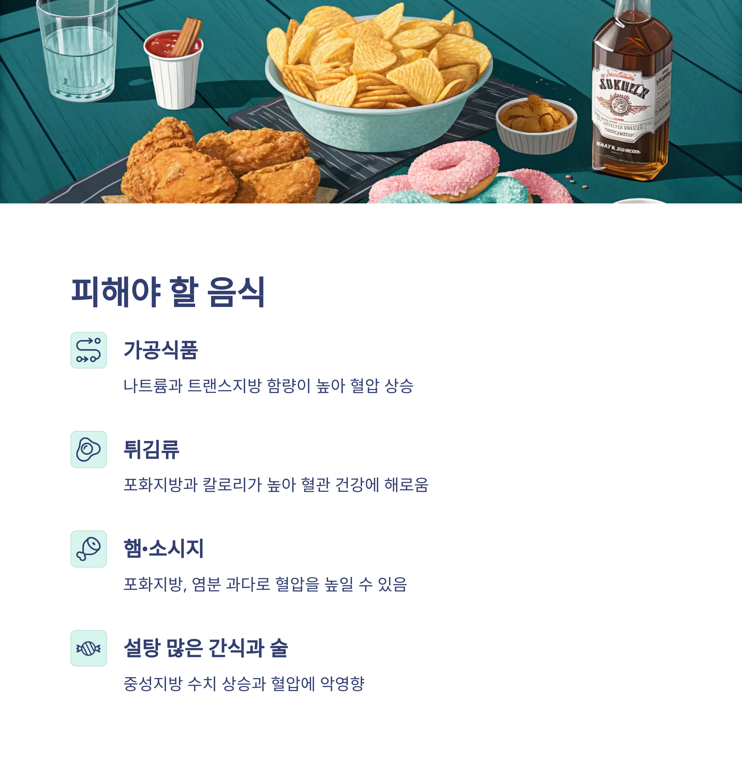 • 술 – 과도한 음주는 혈압과 콜레스테롤 모두에 악영향을 줘요