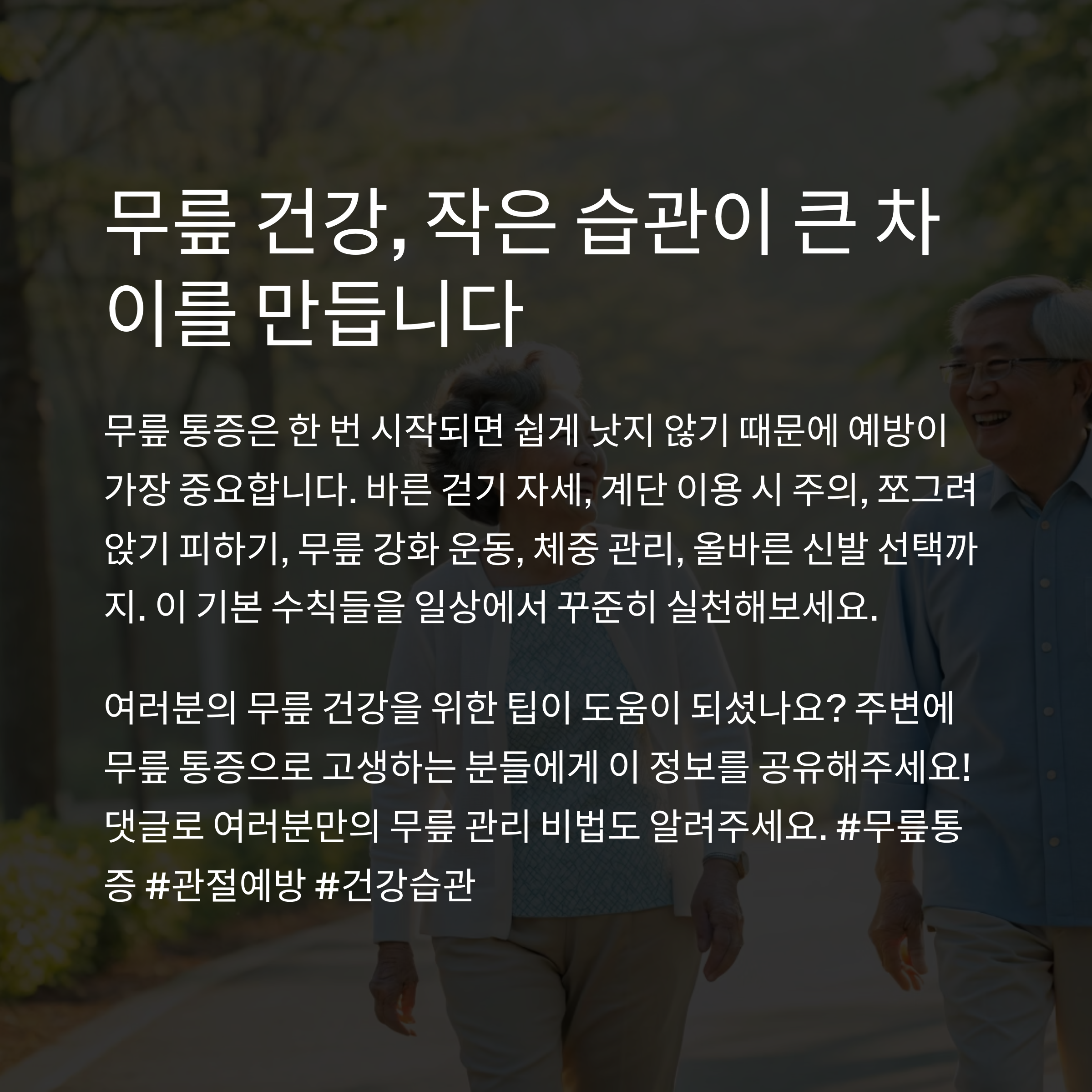 #무릎통증 #중년건강 #관절예방 #걷기자세 #체중관리 #근육강화