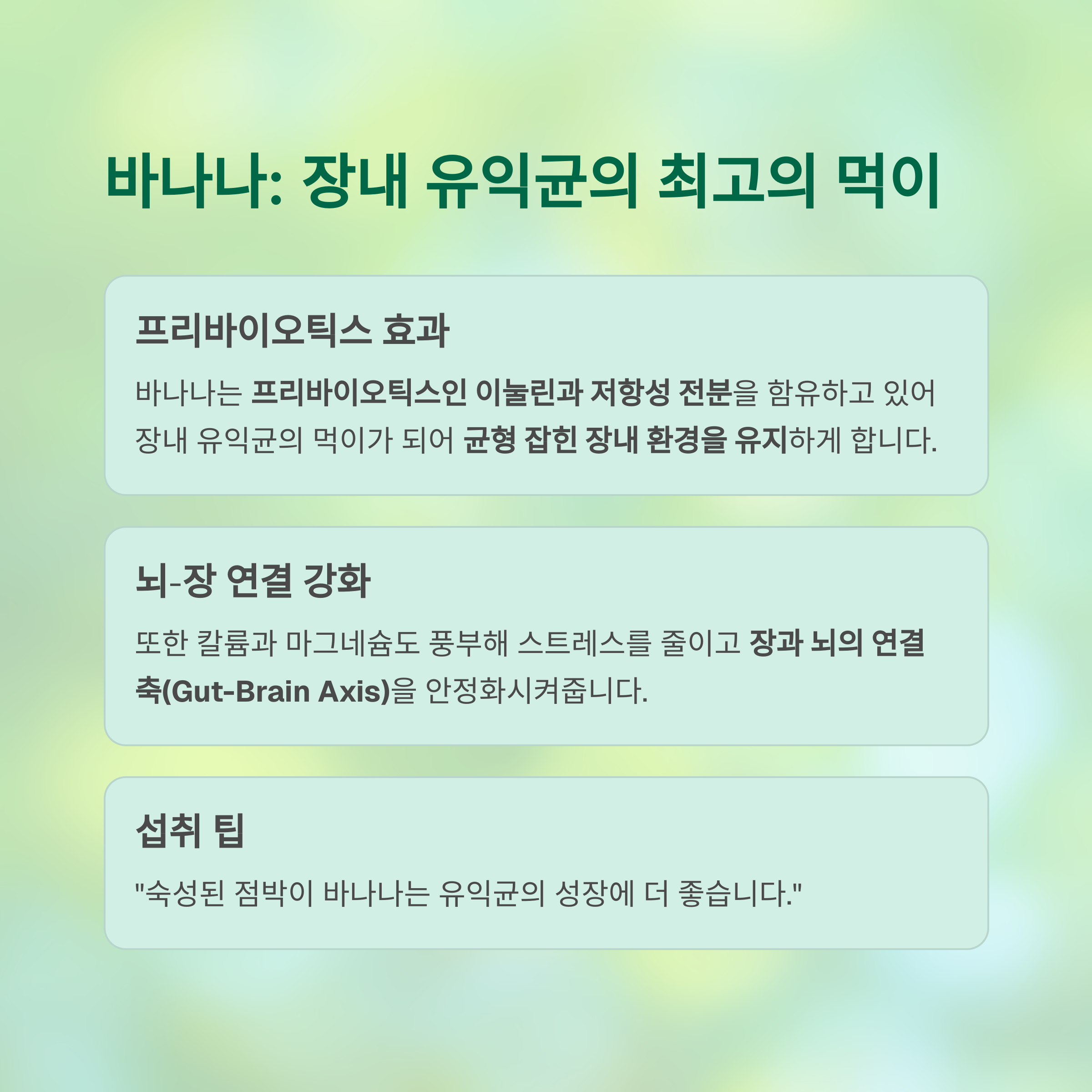 스트레스를 줄이고 **장과 뇌의 연결 축(Gut-Brain Axis)**을 안정화시켜줍니다.