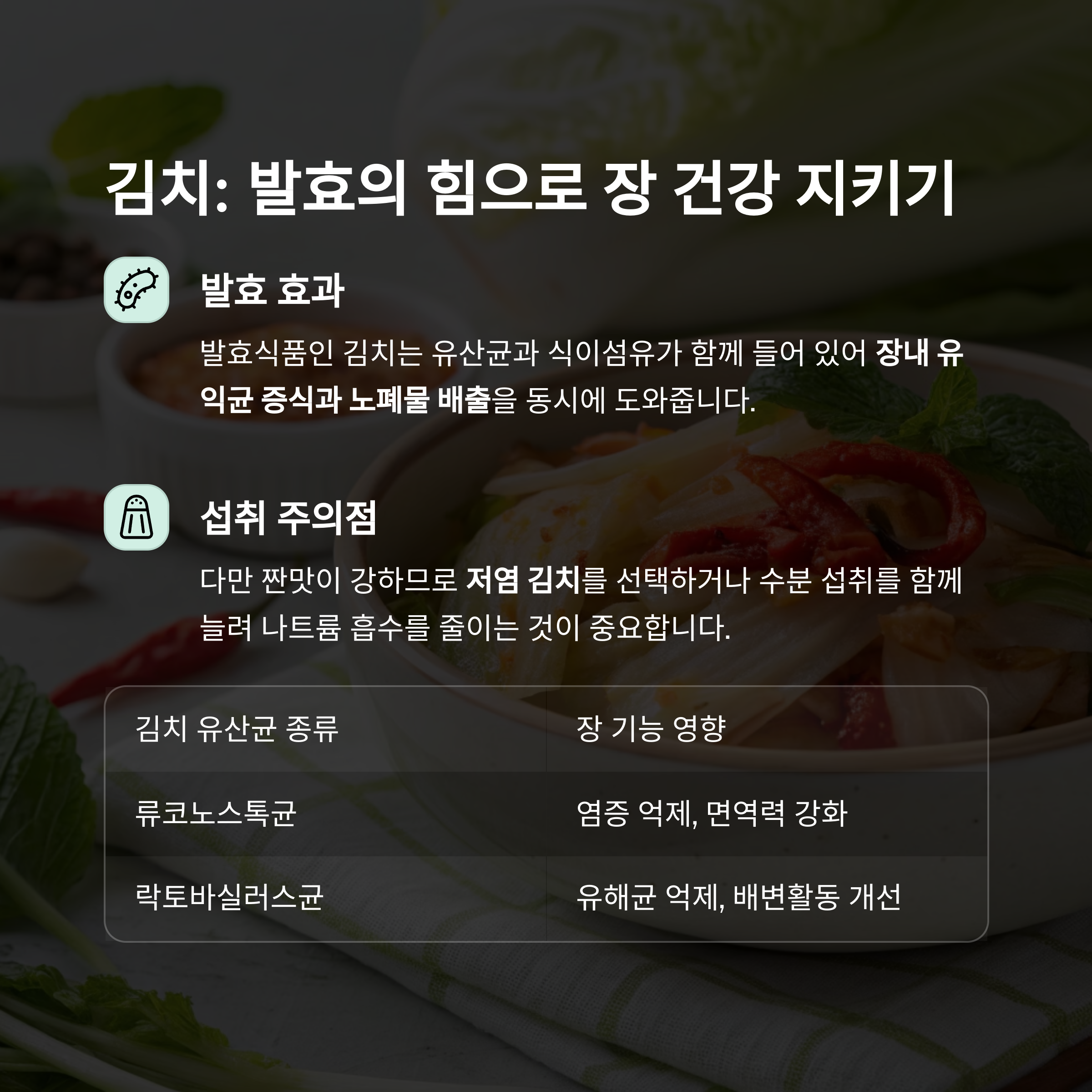 | 김치 유산균 종류 | 장 기능 영향 |