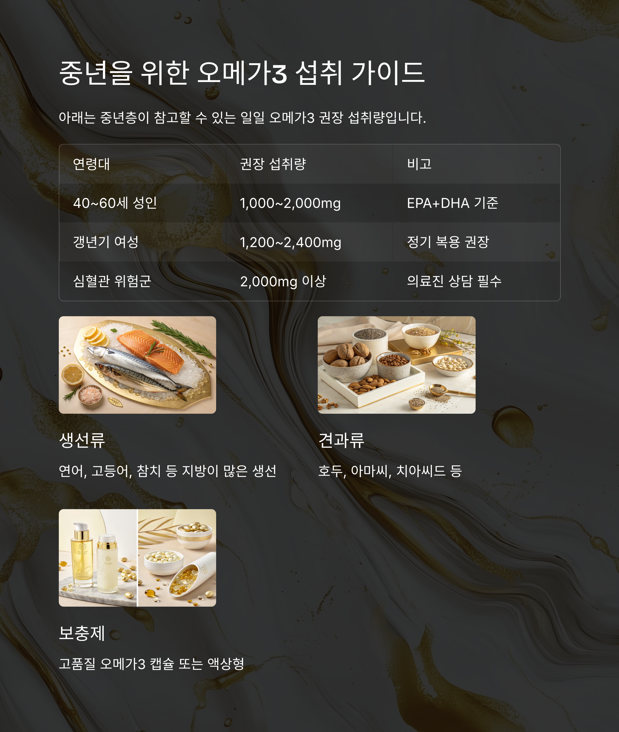 결론: 오메가3는 중년 건강의 ‘보험’입니다