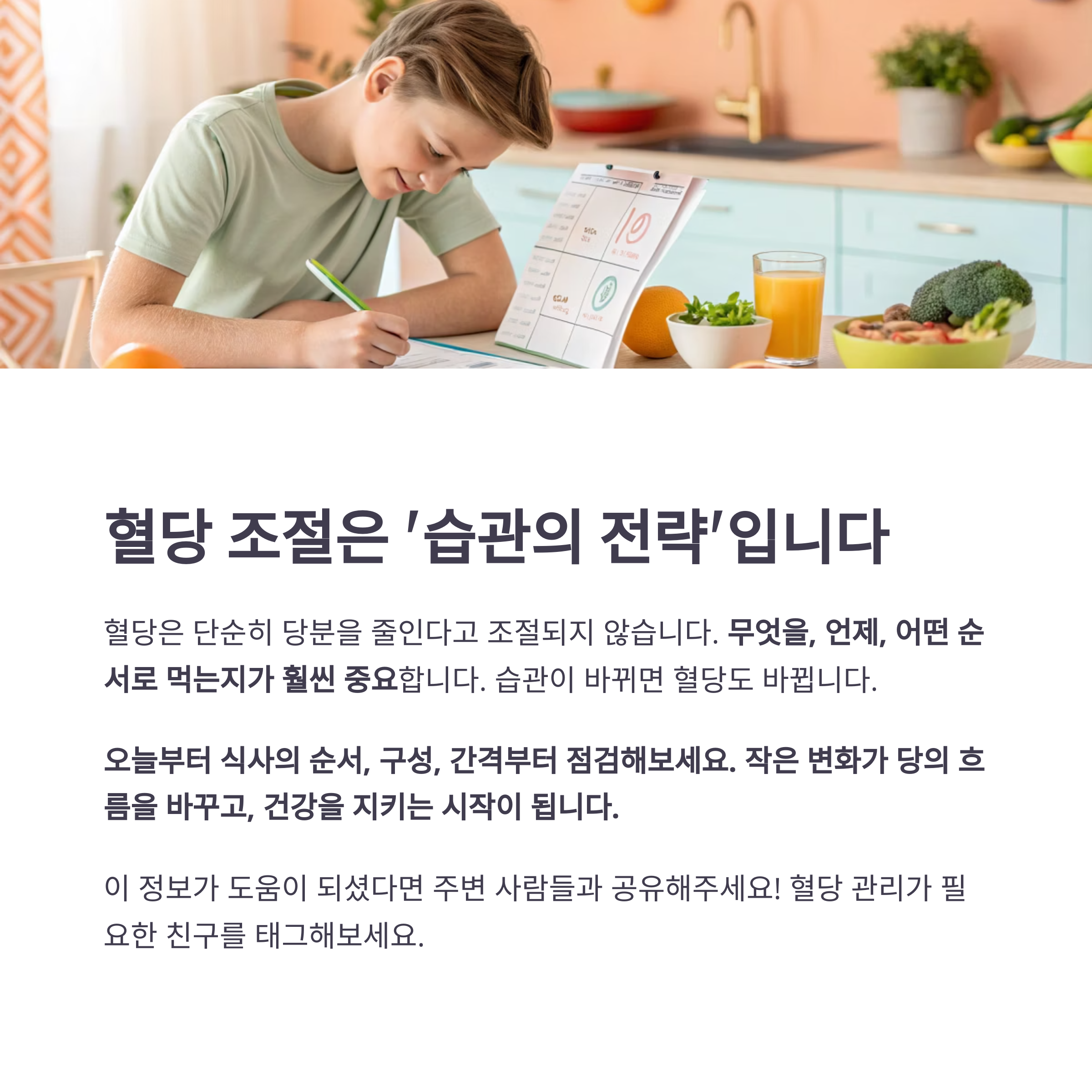 결론: 혈당 조절은 ‘음식의 선택’이 아닌 ‘습관의 전략’입니다