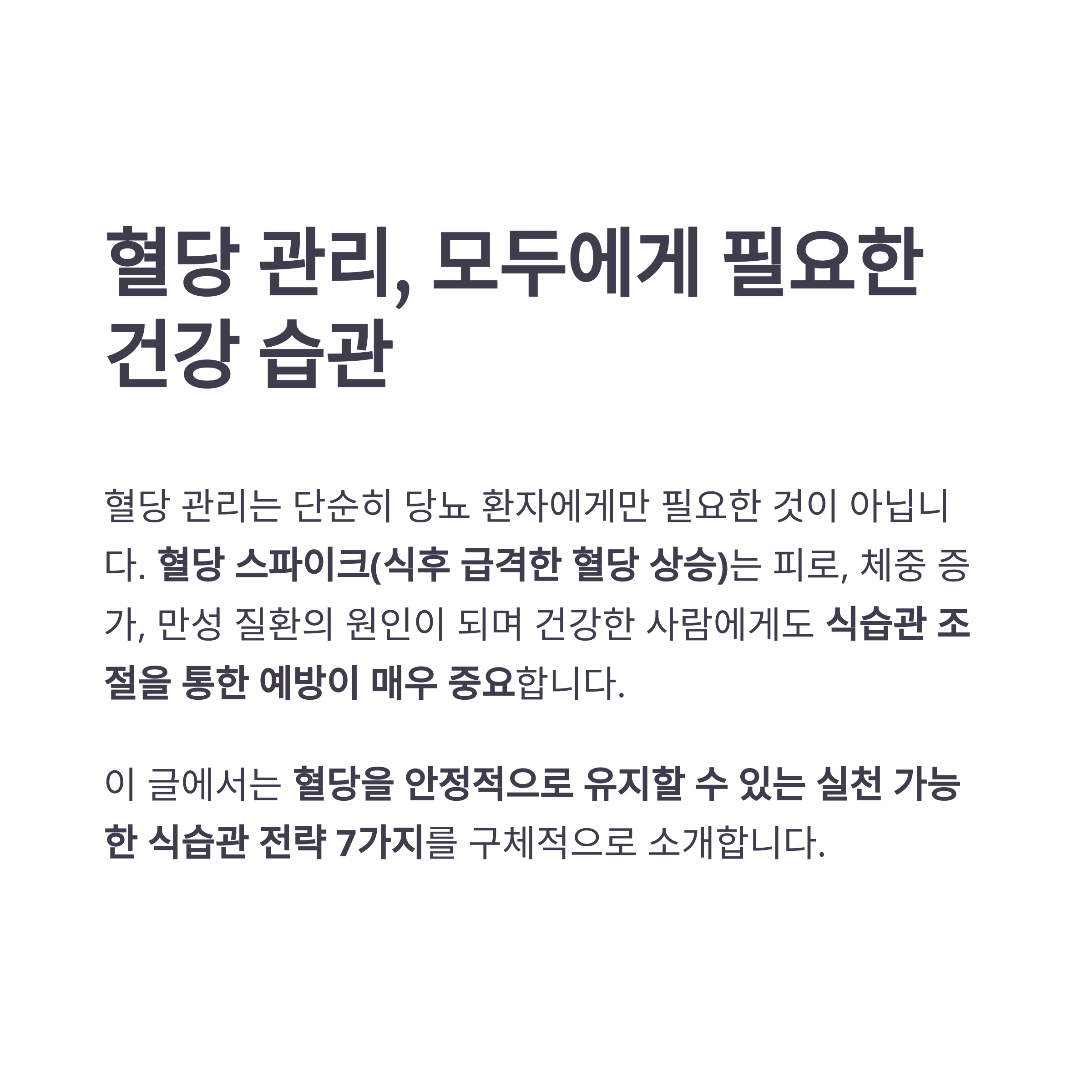 혈당 관리는 단순히 당뇨 환자에게만 필요한 것이 아닙니다.