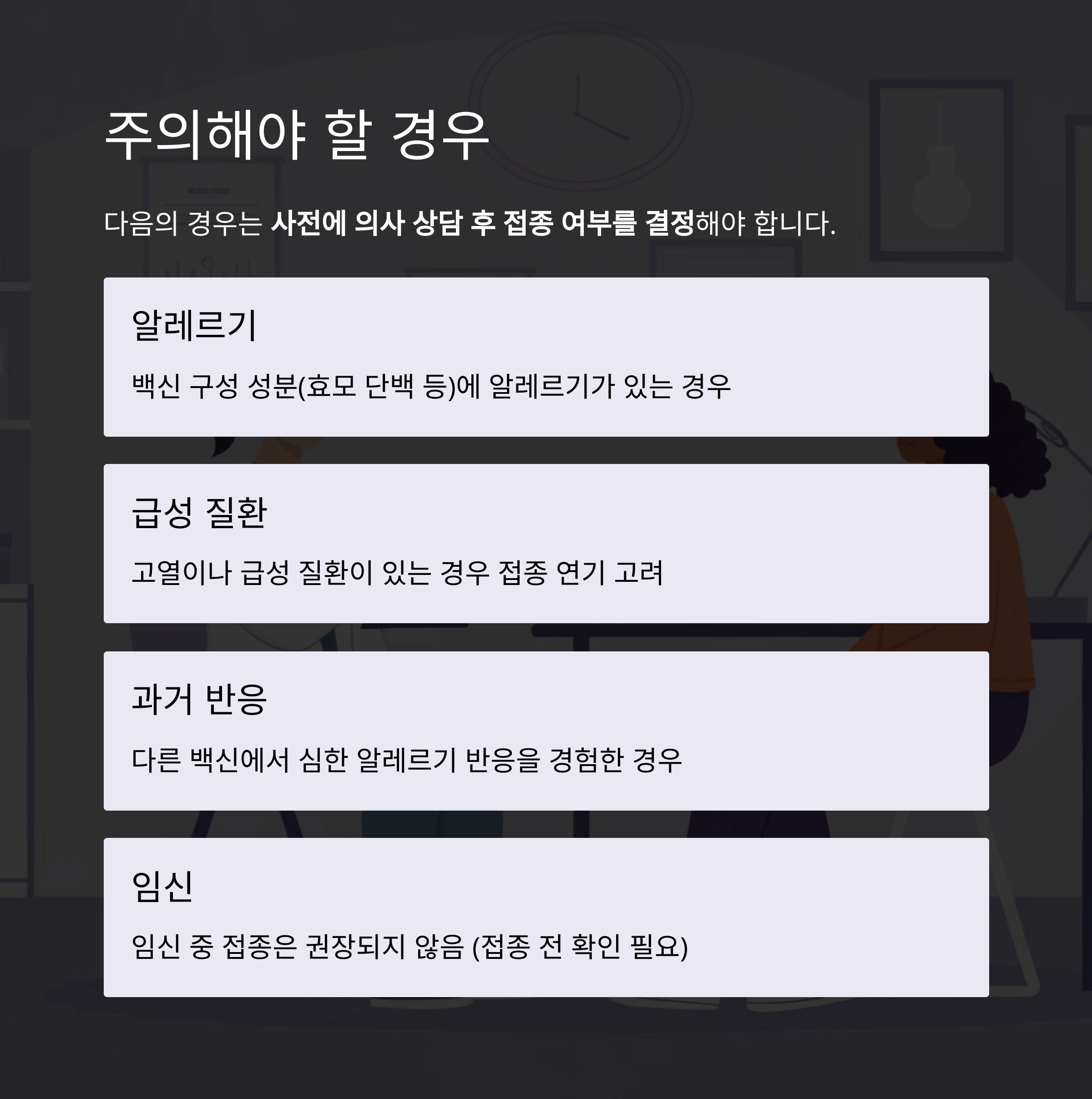 다음의 경우는 사전에 의사 상담 후 접종 여부를 결정해야 합니다.