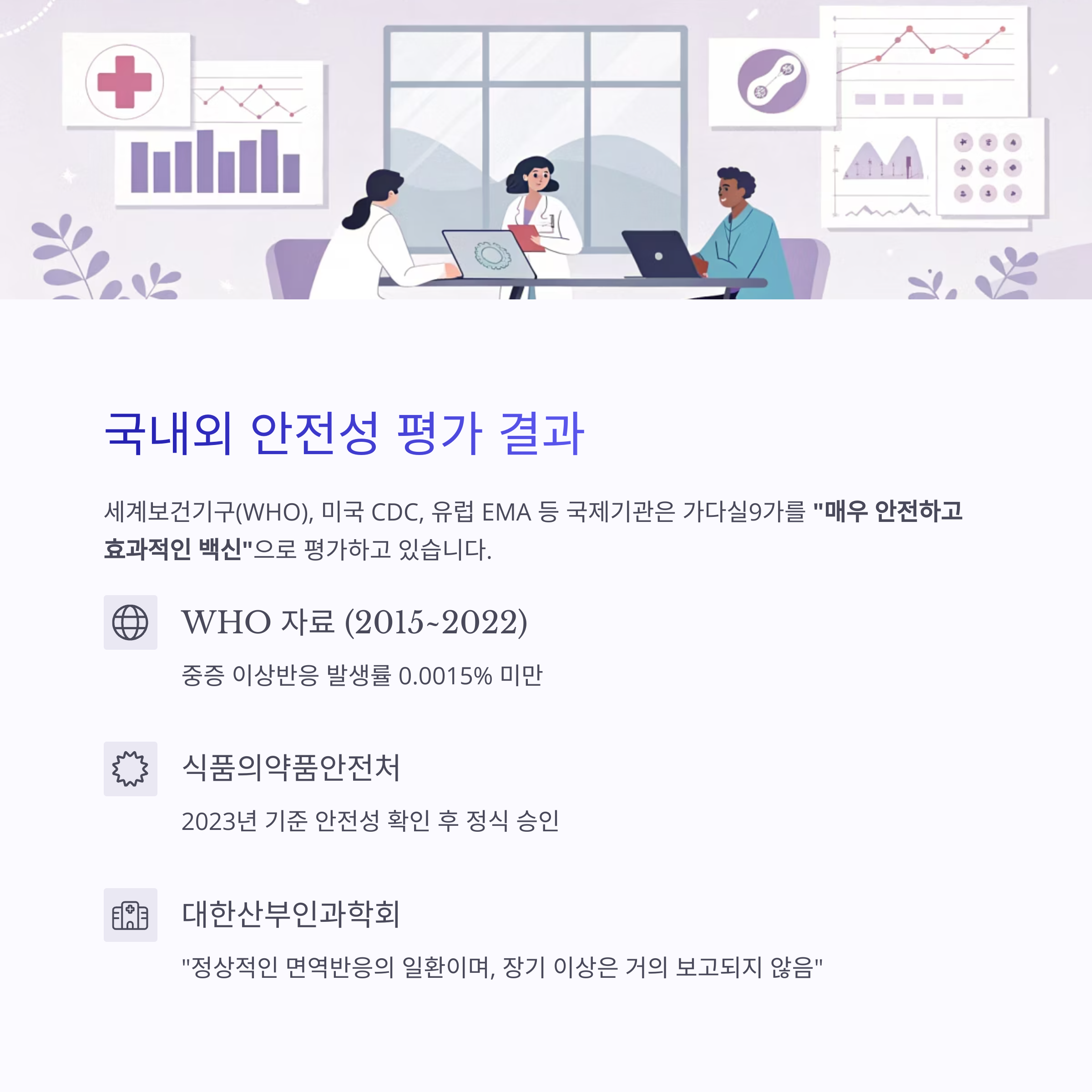 가다실9가를 **"매우 안전하고 효과적인 백신"**으로 평가하고 있으며,