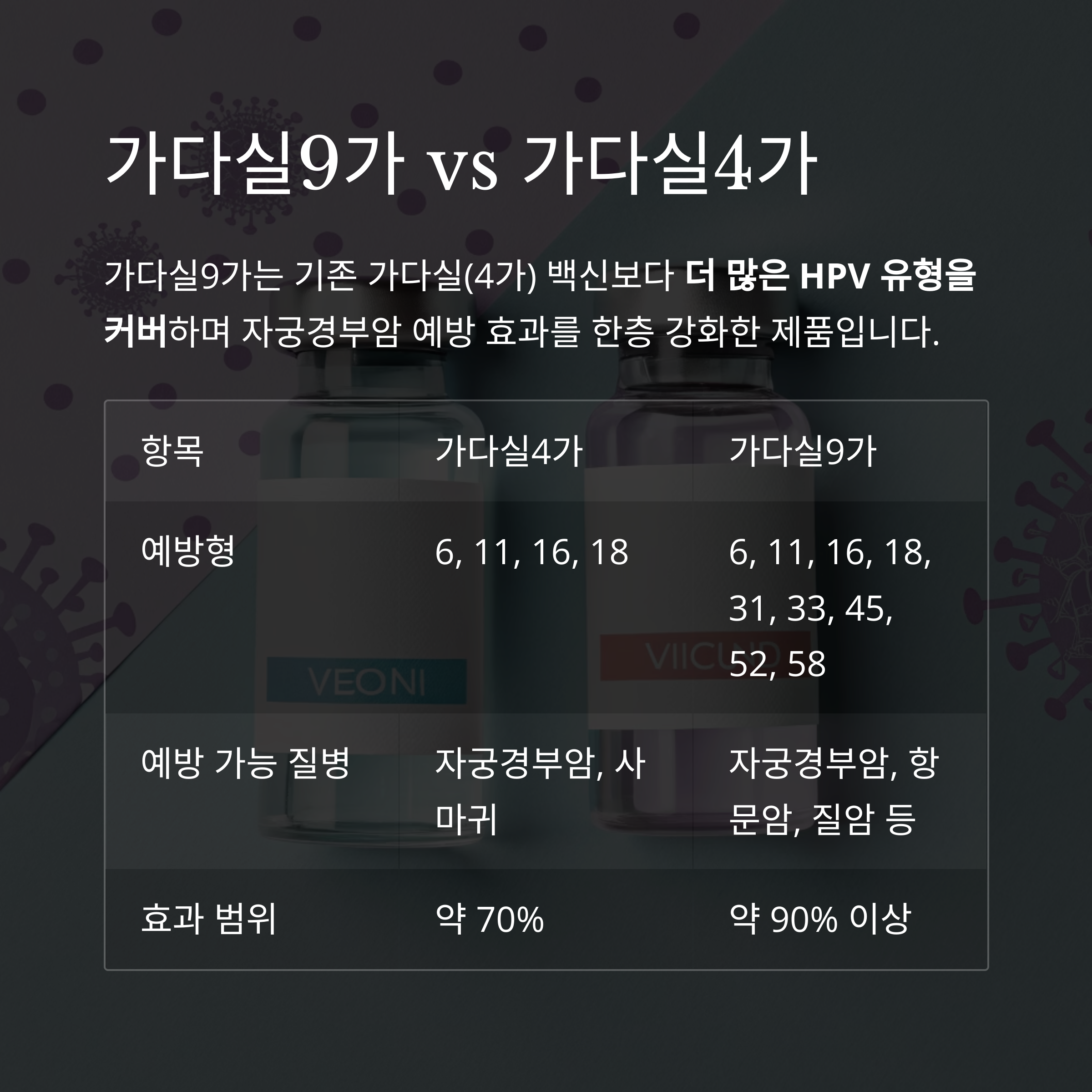 | 항목 | 가다실4가 | 가다실9가 |