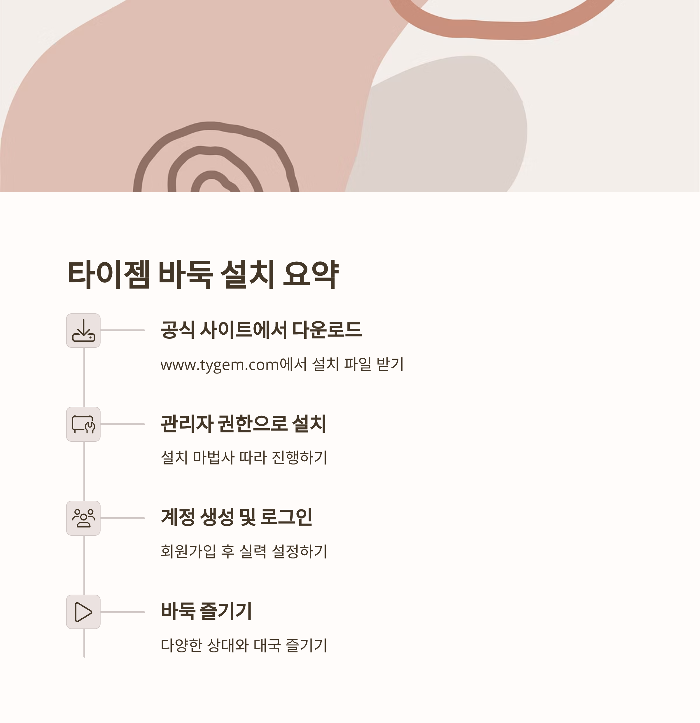 처음 바둑을 설치하려는 분들을 위해 준비했어요. 타이젬 바둑을 어디서 설치해야 할지, 어떤 걸 눌러야 할지 막막했던 분들 많으셨죠? 오늘은 타이젬 바둑 설치 과정을 하나하나 따라가기 쉽게 안내해드릴게요. 누구나 어렵지 않게 따라올 수 있도록 구성했으니 편하게 따라오세요.