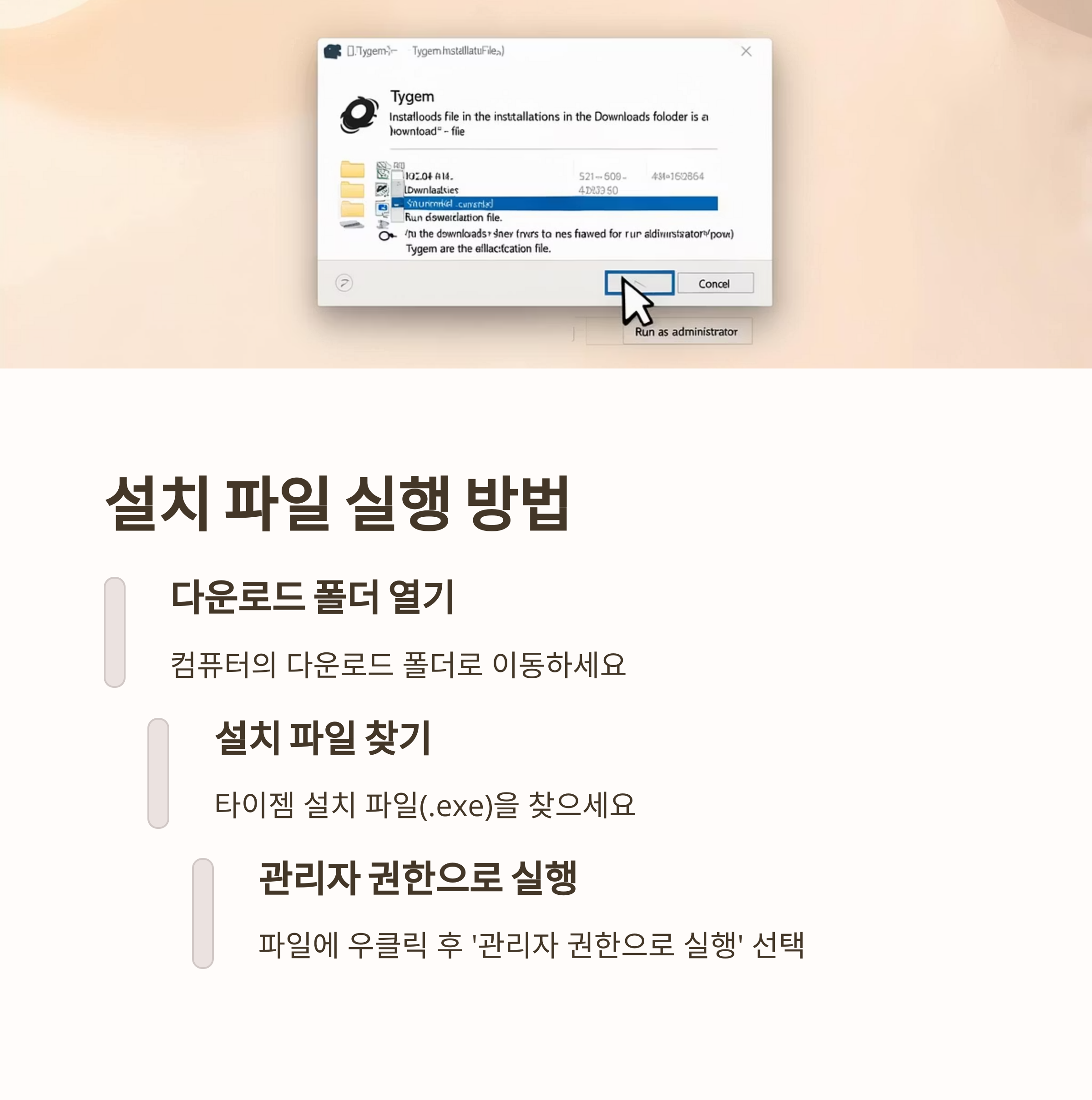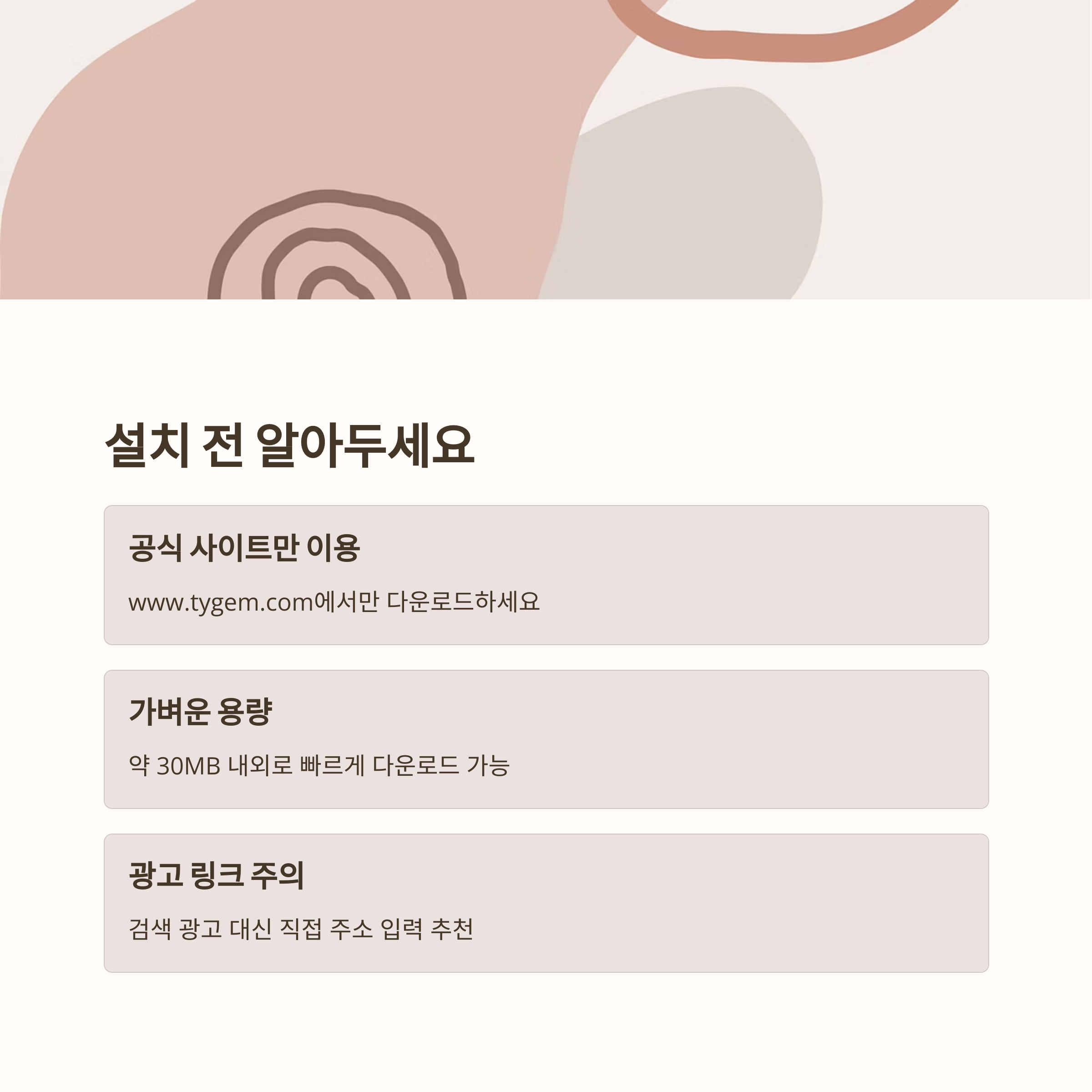 "검색 시 타이젬 설치를 가장 위에 뜨는 광고 링크는 피하세요. 안전하지 않을 수 있습니다."