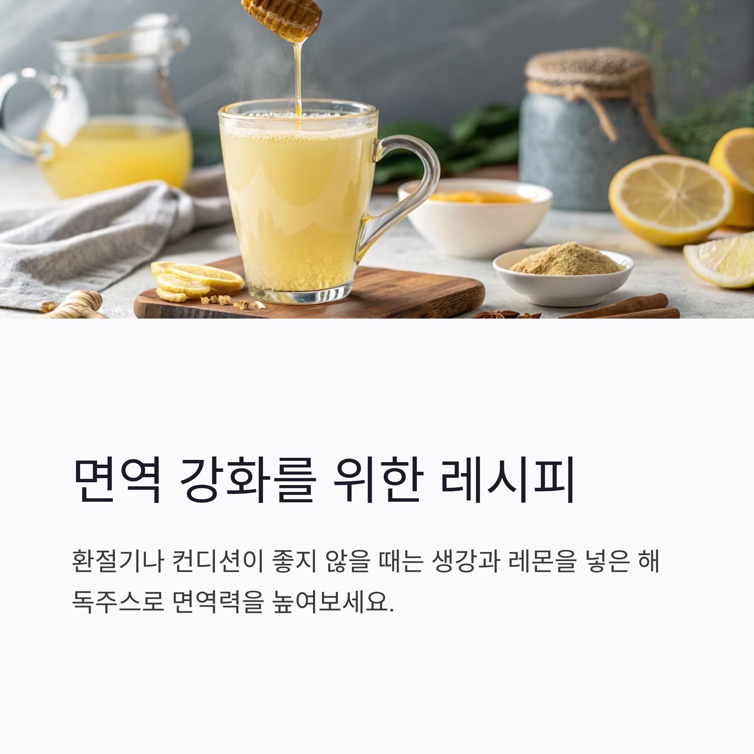 | 면역 강화 | 생강, 레몬 |