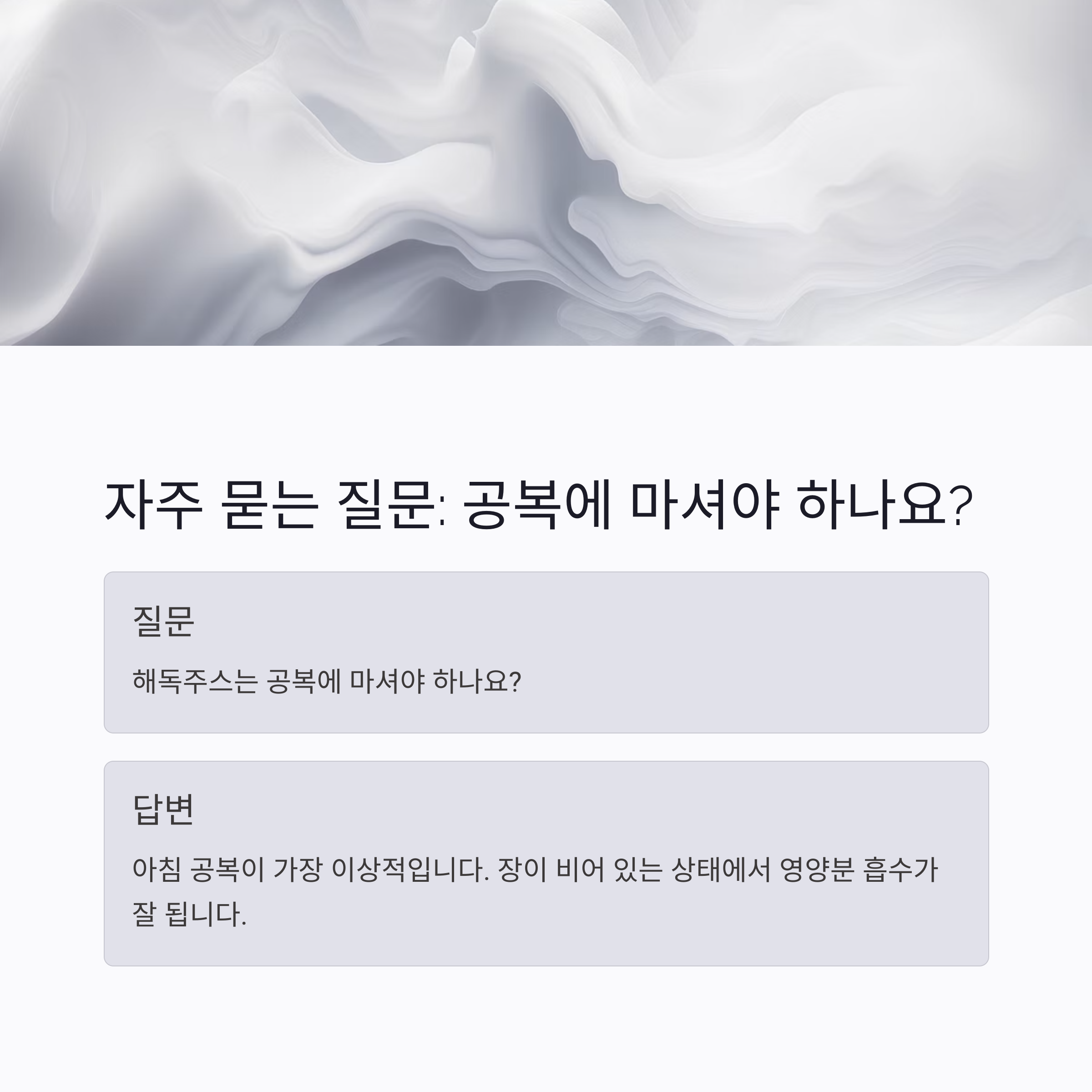 네, 아침 공복에 마시는 것이 가장 효과적이에요. 장이 비어 있는 상태에서 영양분 흡수가 잘 되거든요.