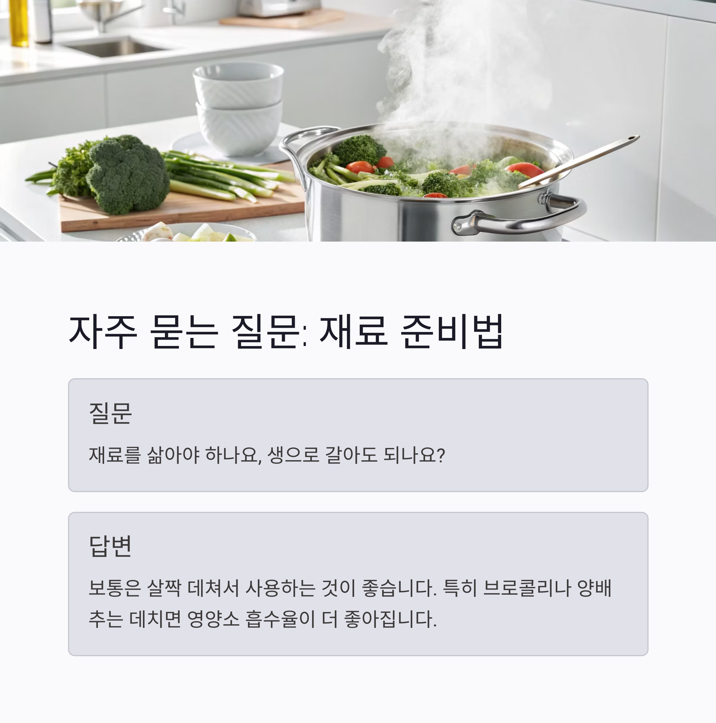 특히 브로콜리나 양배추는 데치면 영양소 흡수율이 더 좋아지기도 해요.