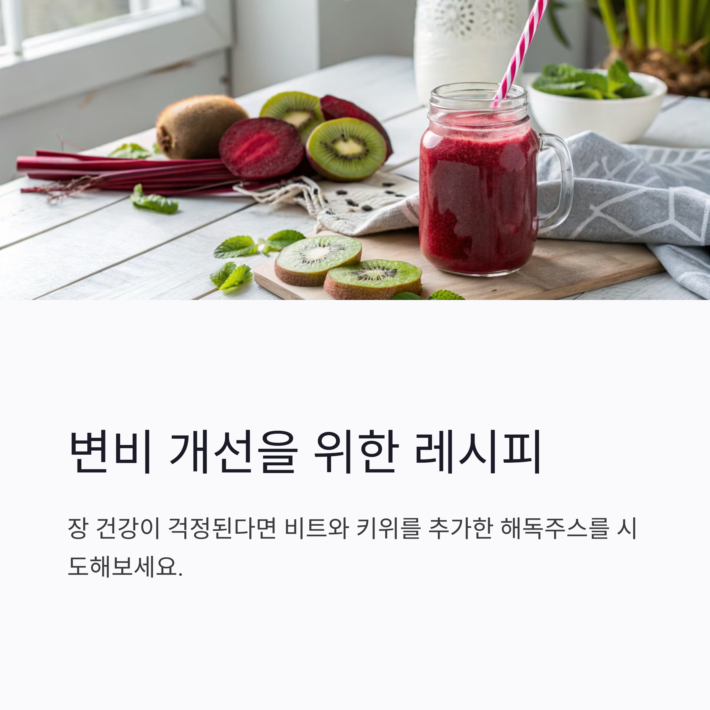 | 변비 개선 | 비트, 키위 |