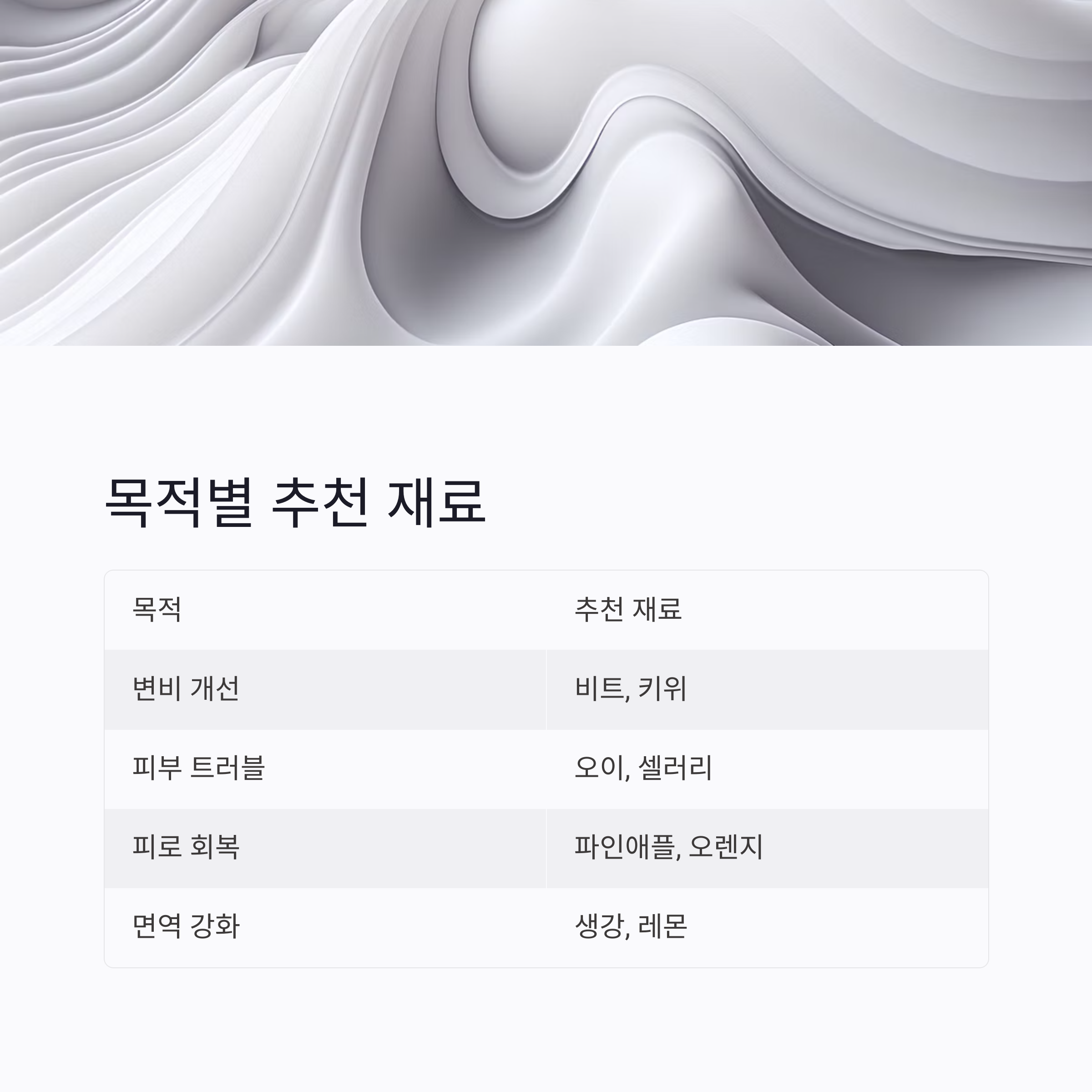 | 목적 | 추천 재료 |