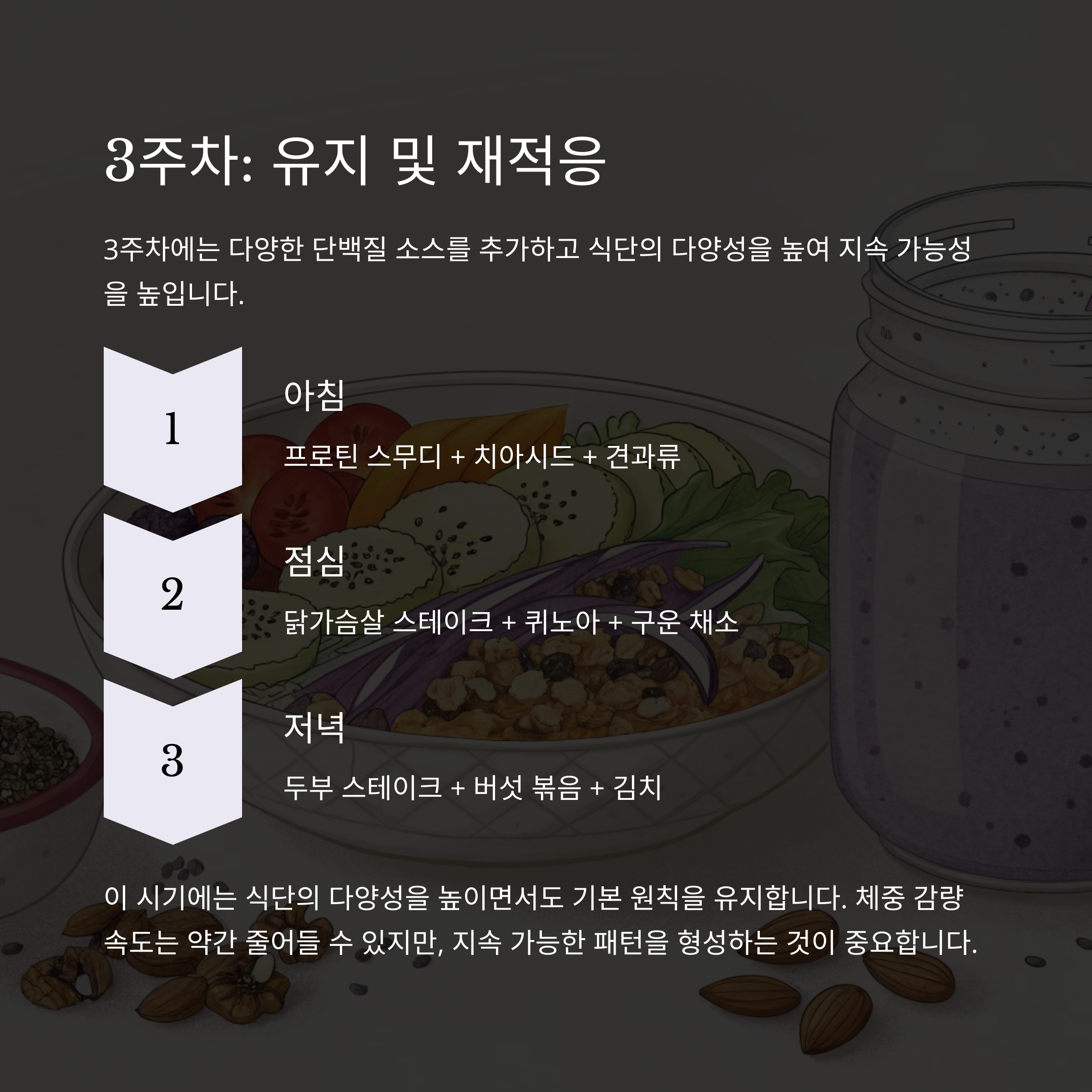 - 3주차: 유지 및 재적응 – 다양한 단백질 소스 추가
