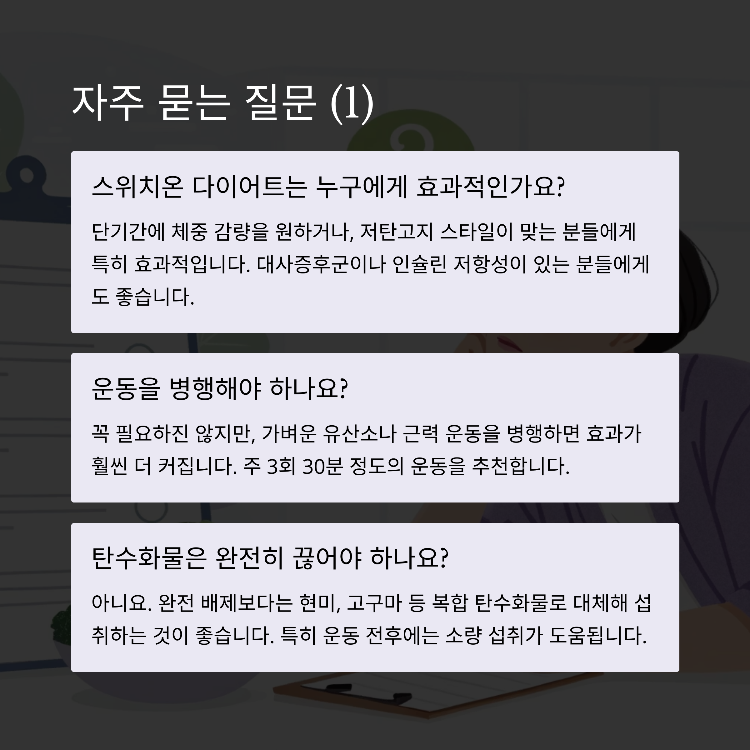 스위치온 다이어트는 분명 효과적인 방식이지만, 다음과 같은 흔한 실수들을 주의해야 해요.