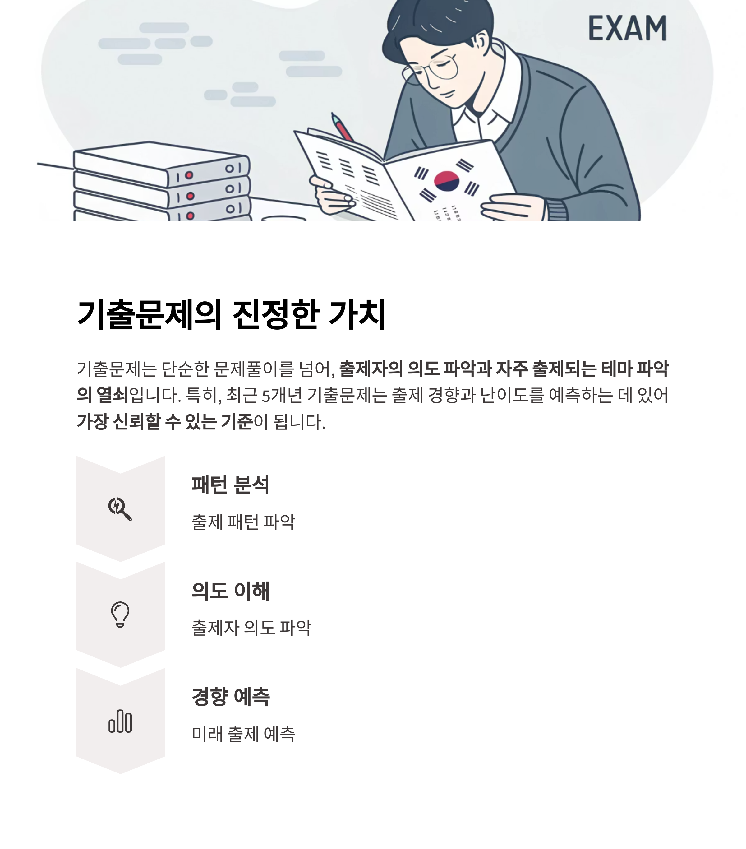 기출문제는 단순한 문제풀이를 넘어, 출제자의 의도 파악과 자주 출제되는 테마 파악의 열쇠입니다.