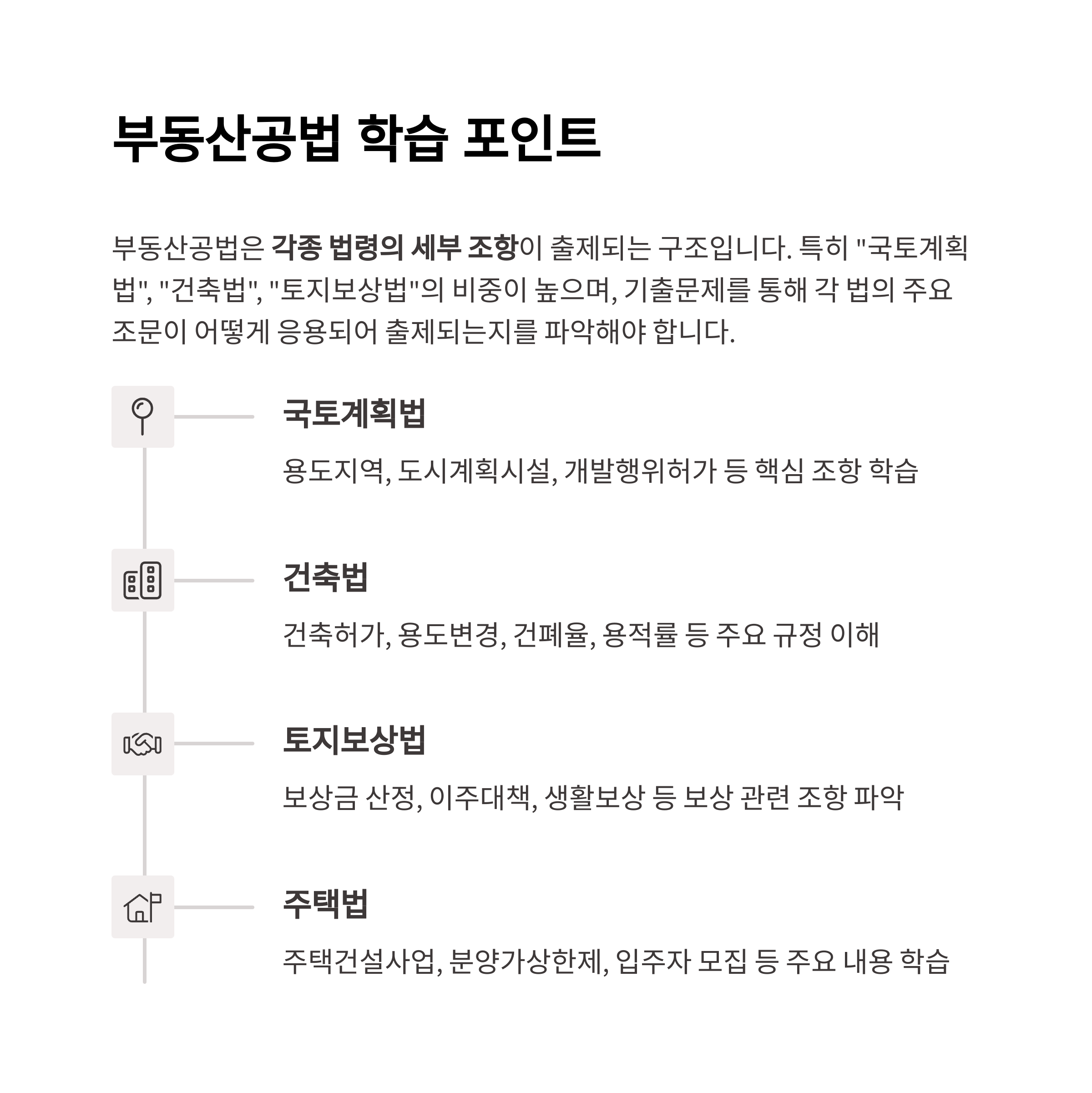 부동산공법은 각종 법령의 세부 조항이 출제되는 구조입니다.