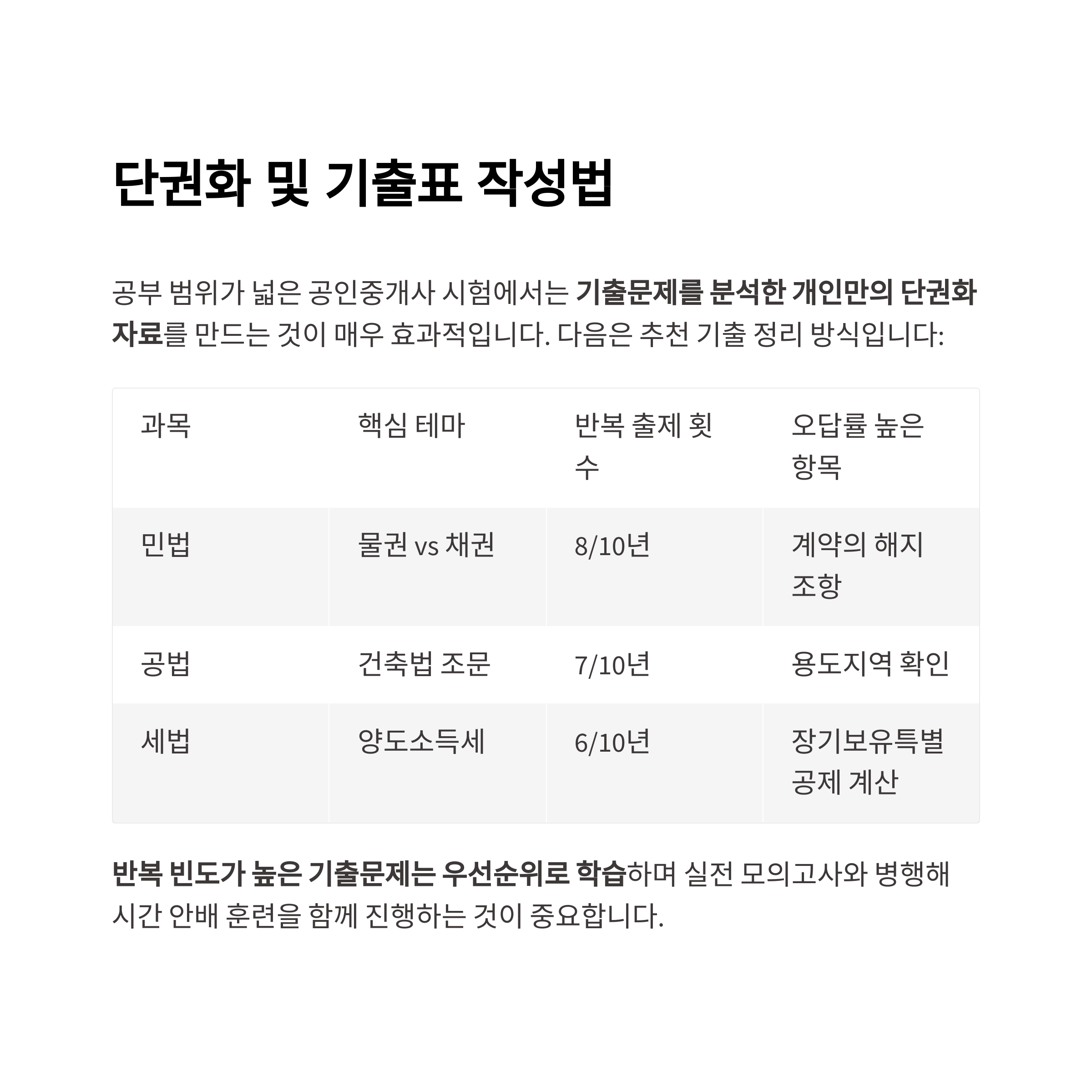 기출문제 활용 전략: 단권화 및 기출표 작성