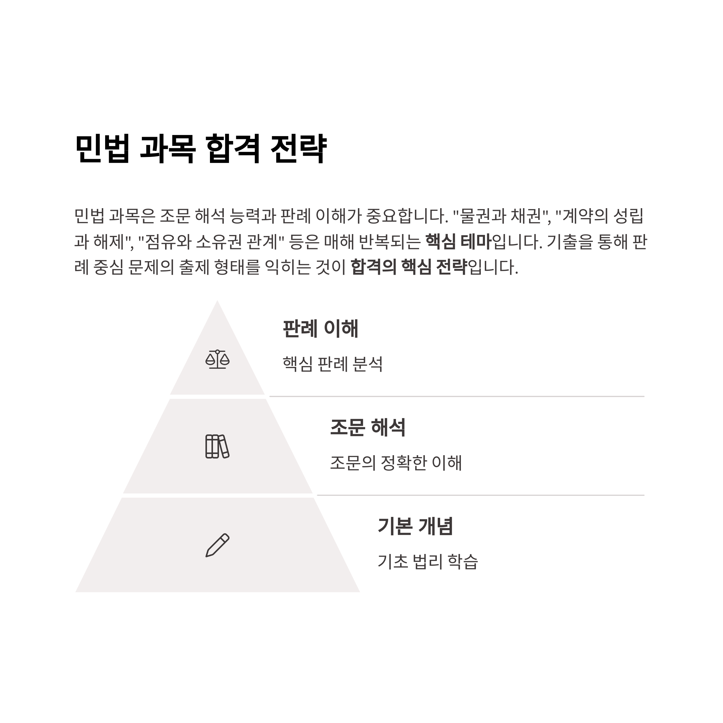 민법 과목은 조문 해석 능력과 판례 이해가 중요합니다.