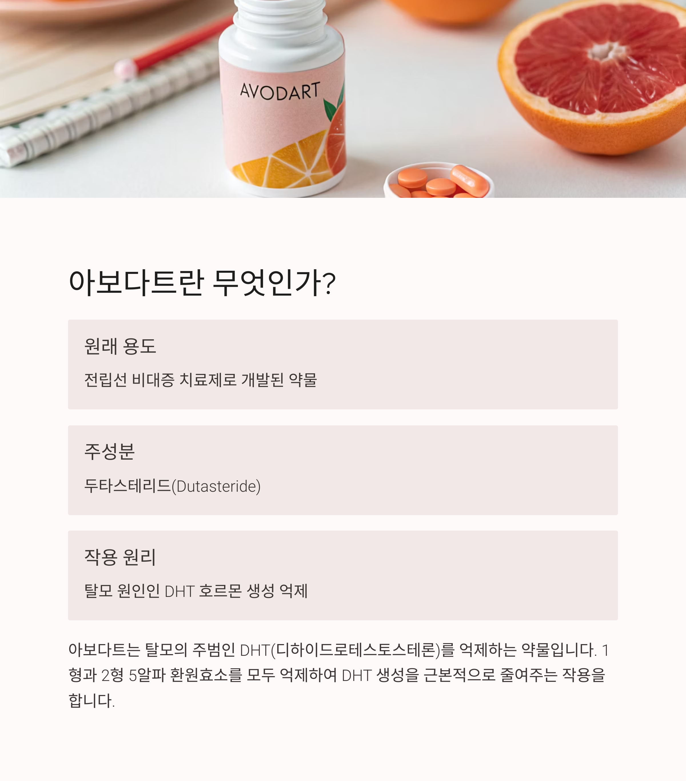 아보다트(Dutasteride)는 원래 전립선 비대증 치료제로 개발된 약물이지만, 놀랍게도 탈모 치료에도 뛰어난 효과를 보이며 주목받고 있어요. 이 약의 주성분인 두타스테리드는 DHT(디하이드로테스토스테론)라는 남성 호르몬을 억제하는 역할을 해요. 이 DHT가 모낭을 위축시켜 탈모를 유발하는 주범인데요, 아보다트는 1형과 2형 5알파 환원효소를 모두 억제하여 DHT 생성을 근본적으로 줄여줘요.