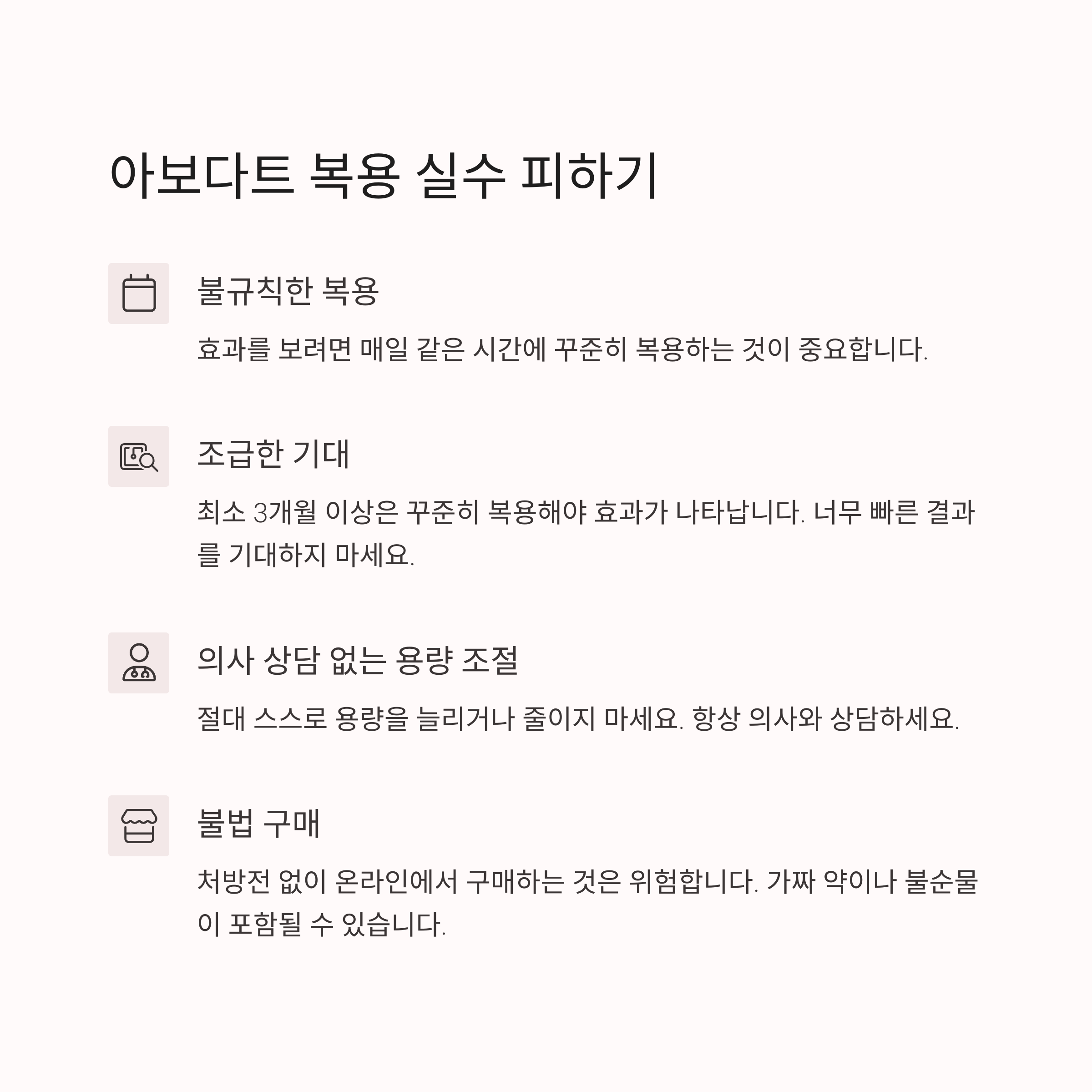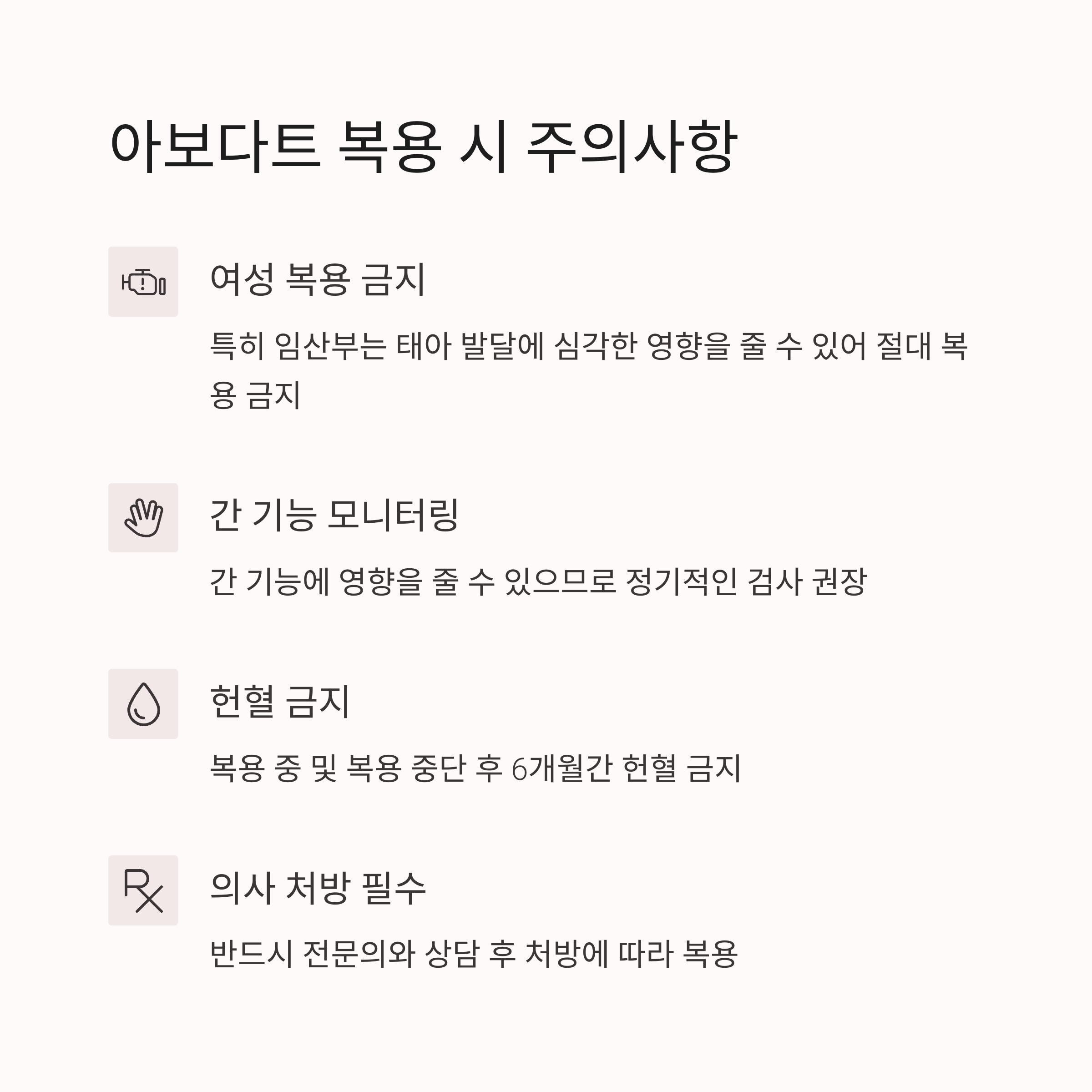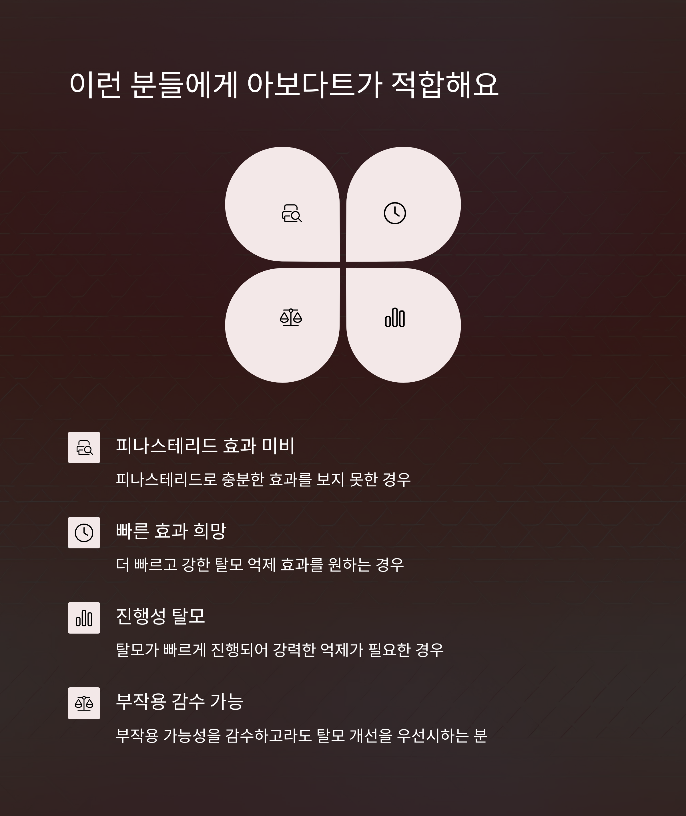 모든 약이 모든 사람에게 맞는 건 아니에요. 아보다트는 특히 다음과 같은 분들에게 고려해볼만한 선택입니다.