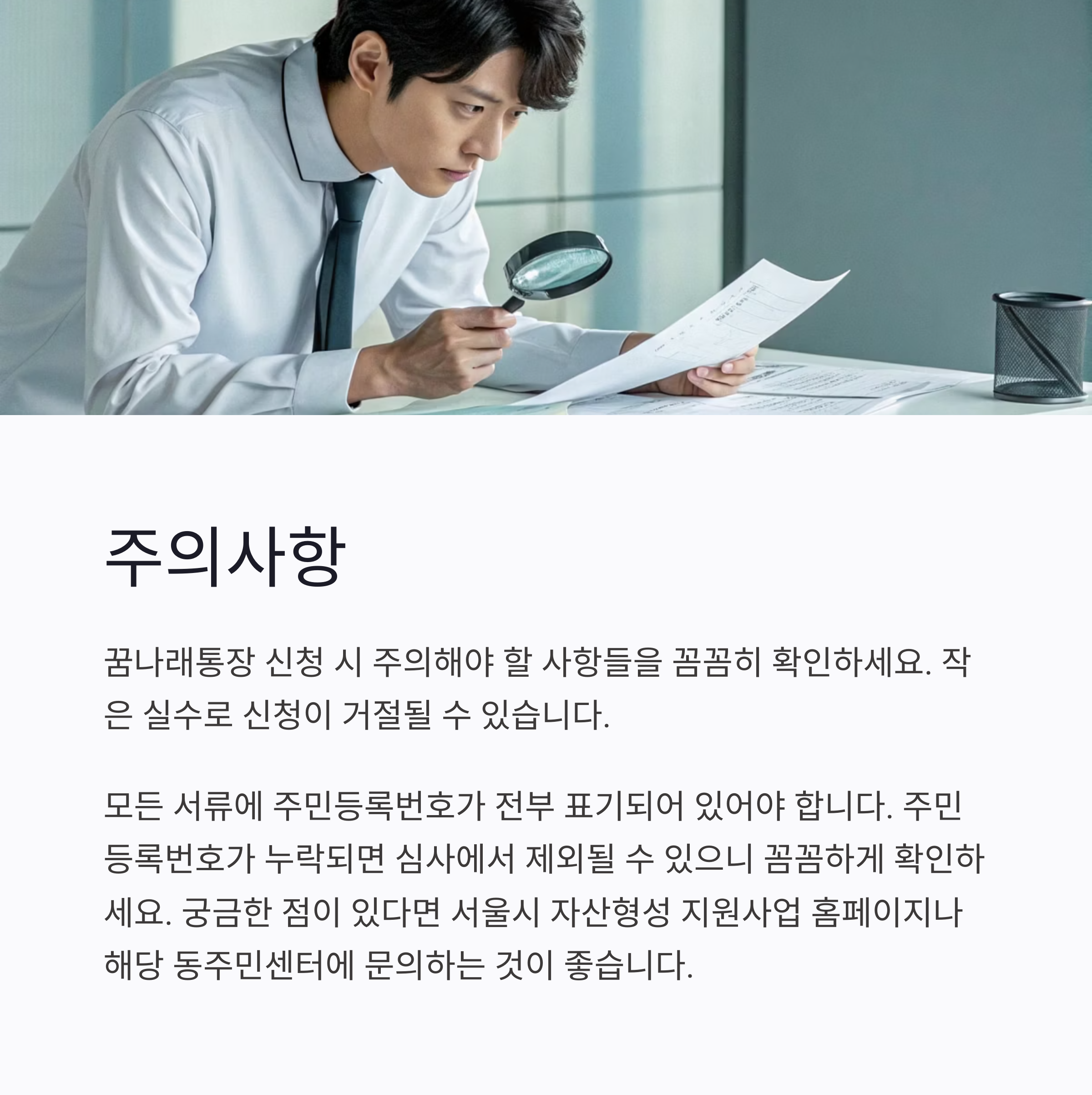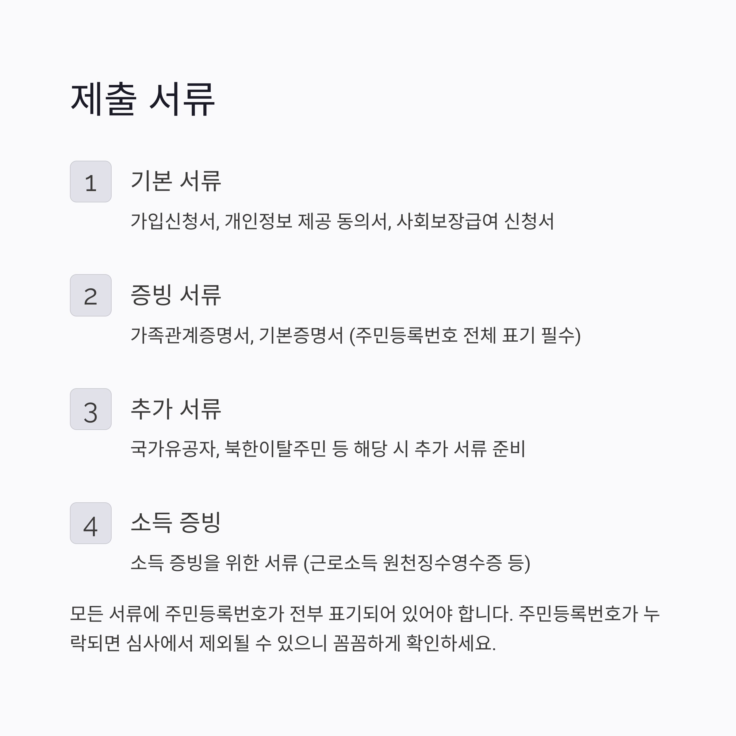 서류 누락 또는 주민등록번호 미기재 시 심사에서 제외될 수 있습니다.
