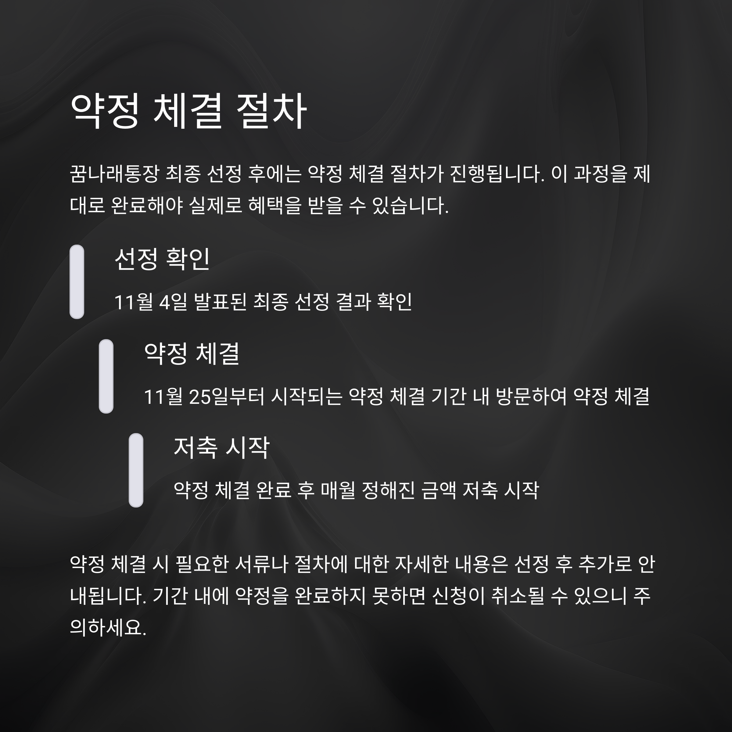 11월 25일부터 약정 체결 및 저축 시작. 반드시 기한 내 완료해야 최종 참여 확정됩니다.