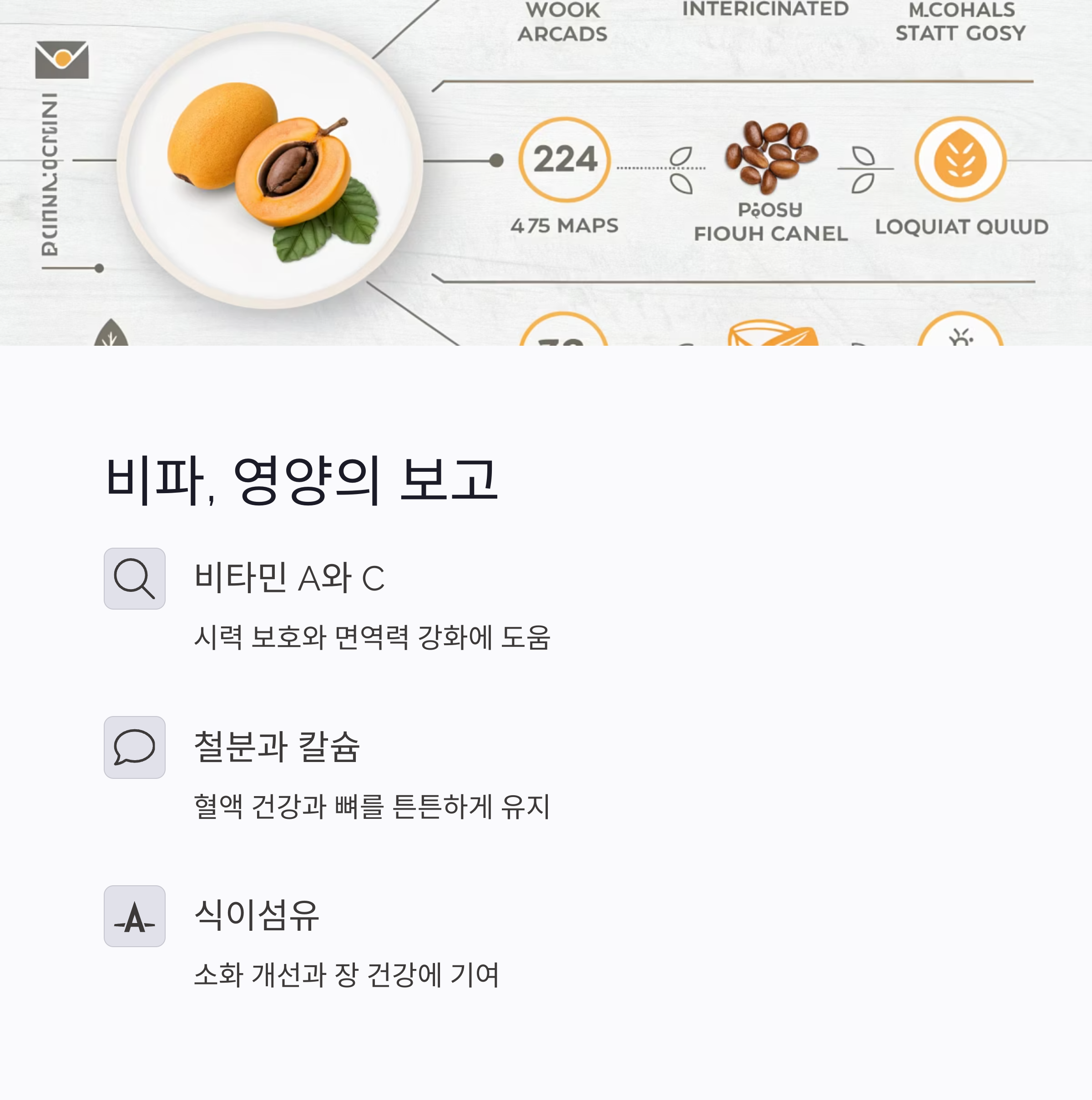 비파는 비타민 A, C, 철분, 칼슘, 식이섬유가 풍부한 과일이에요. 눈 건강과 면역력, 소화 기능까지 다방면에서 도움을 줄 수 있죠.