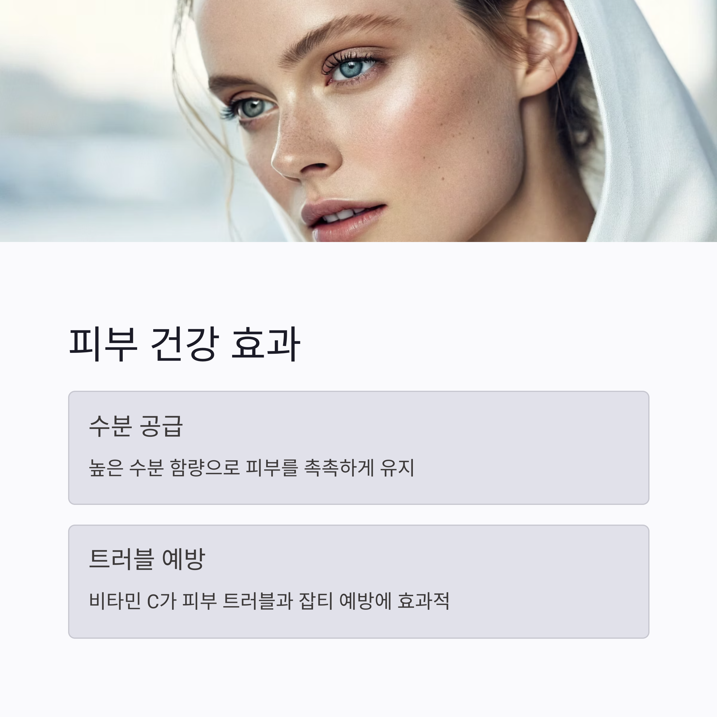 수분과 비타민C가 피부 트러블 완화에 좋아요.