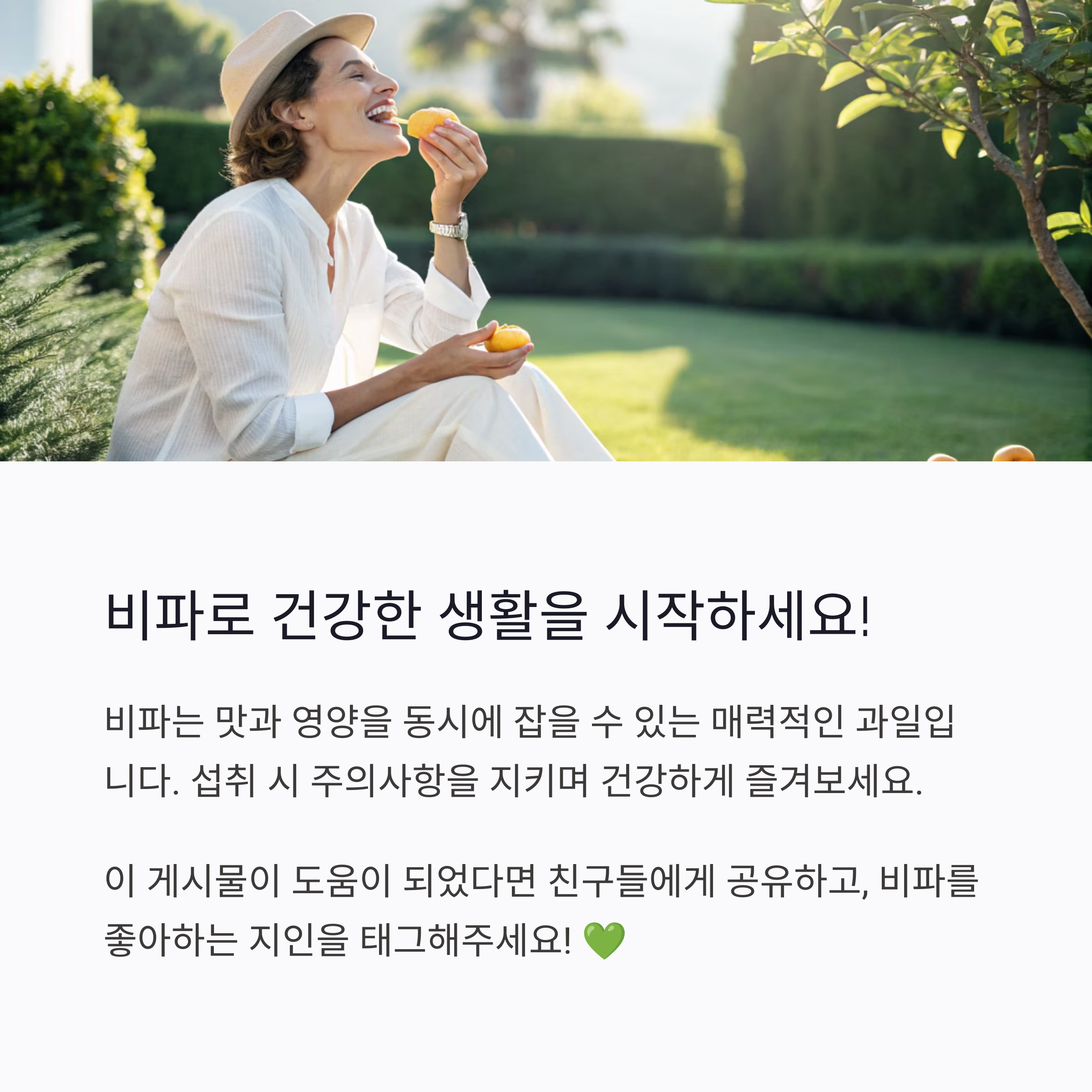 비파는 맛과 건강을 동시에 잡을 수 있는 과일이에요. 섭취 시 주의사항만 잘 지킨다면, 최고의 자연 건강식이 될 수 있답니다!