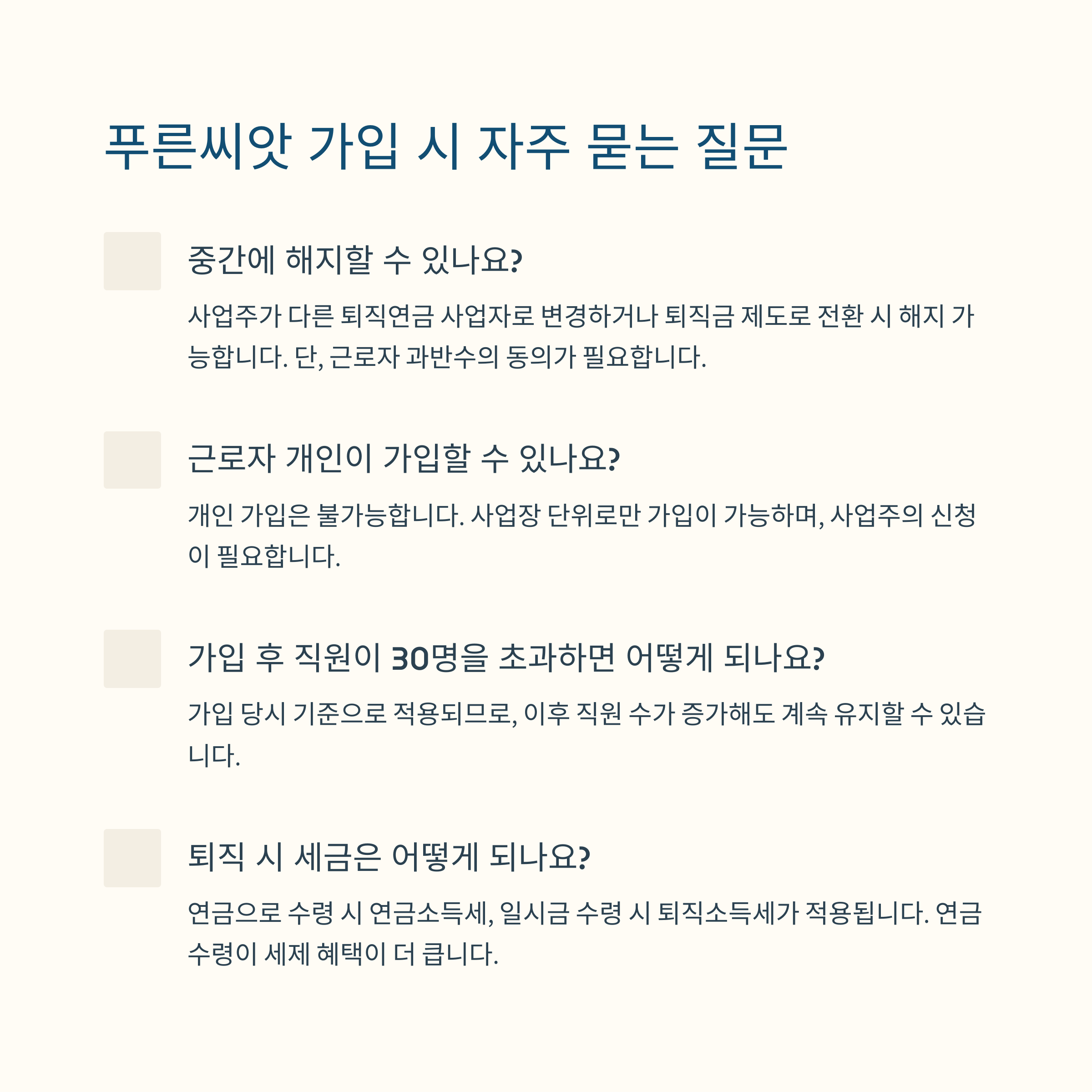 근로복지공단이 운영하는 중소기업 맞춤형 퇴직연금 제도입니다. 30인 이하 중소기업 대상이며, 사업주와 근로자가 함께 기금을 조성합니다.