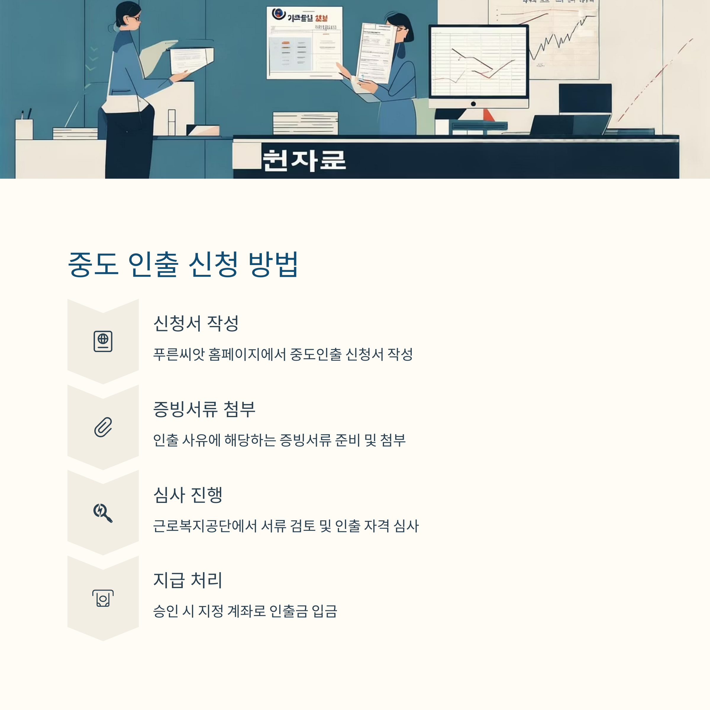중도 인출: 주택 구입, 전세, 의료비, 재해 등 사유 해당 시 가능