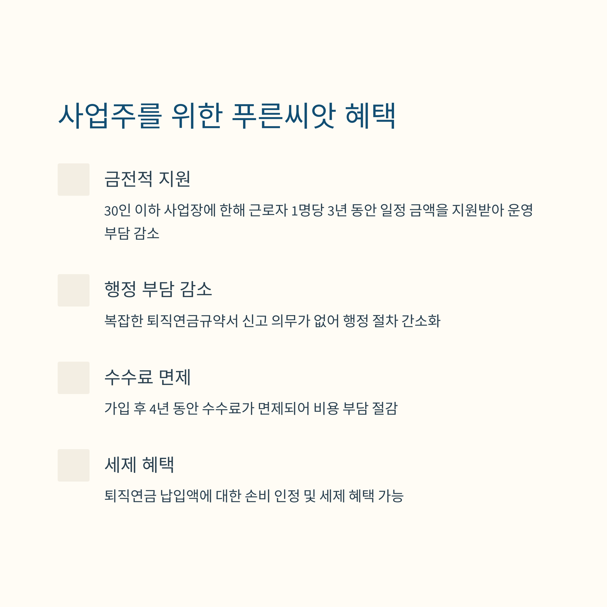사업주: 수수료 면제(4년) + 3년간 지원금 제공