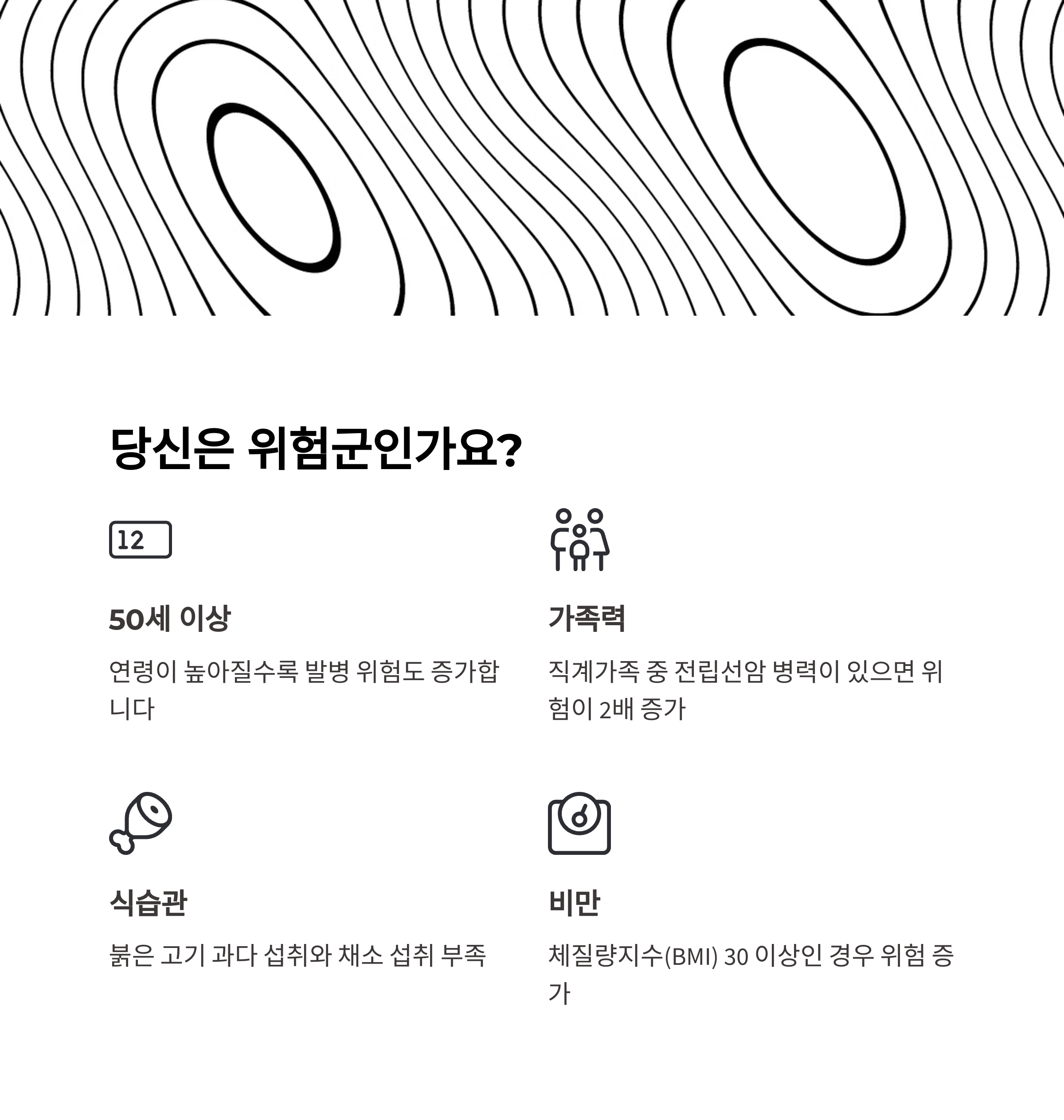 솔직히 말해서 ‘전립선암은 나이 든 사람들만 걸리는 병’이라고 생각하는 분들 많죠? 그런데 꼭 그렇지만은 않더라고요. 아래 요인 중 한두 가지라도 해당된다면 조금 더 신경 써서 건강 체크를 해보는 게 좋아요.