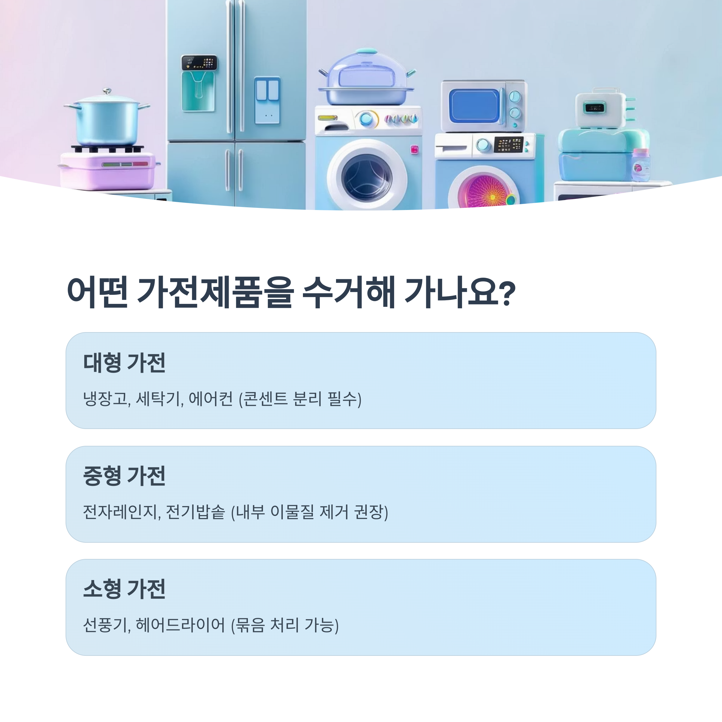 | 소형 가전 | 선풍기, 헤어드라이어 | 묶음 처리 가능 |