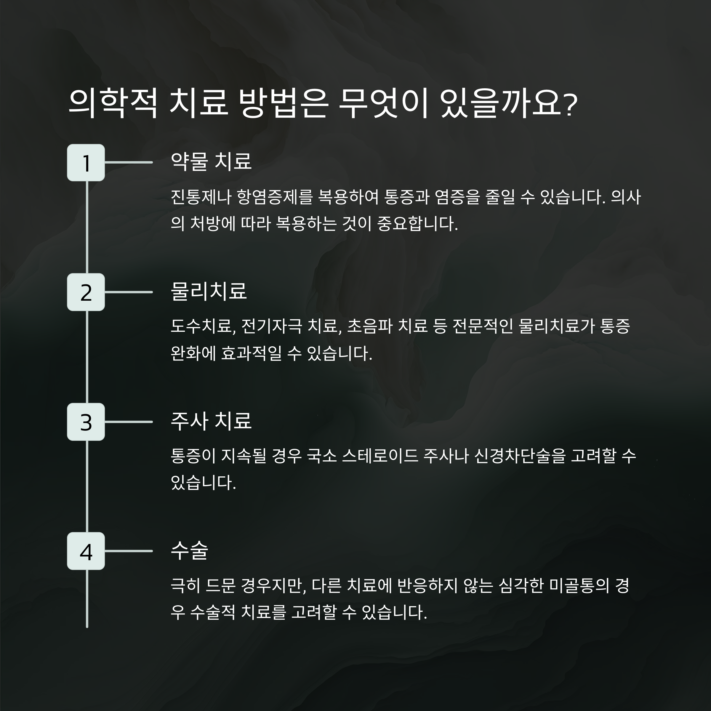 - 약물 치료: 진통제나 항염증제 복용 (의사 상담 필수)