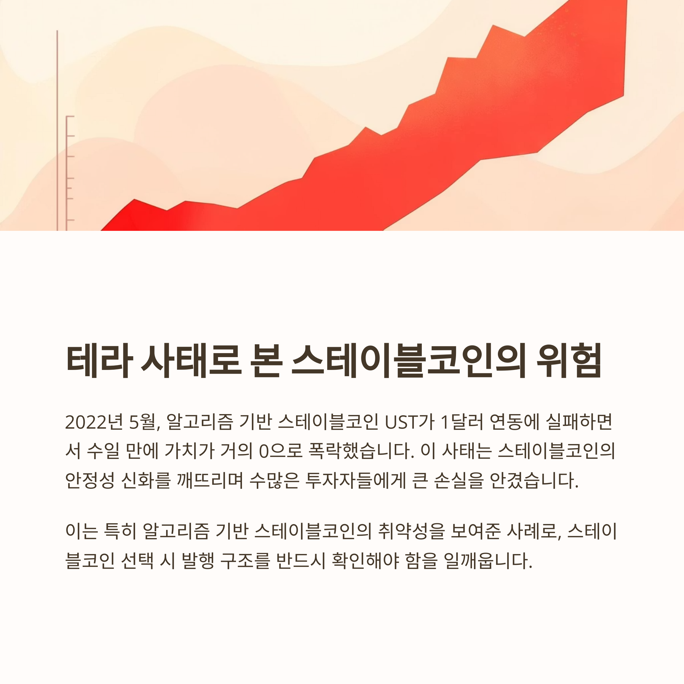 - 연동 실패 위험(디페깅) – 1달러 유지 실패하면 큰 손실로 이어질 수 있어요 (테라 사태처럼)