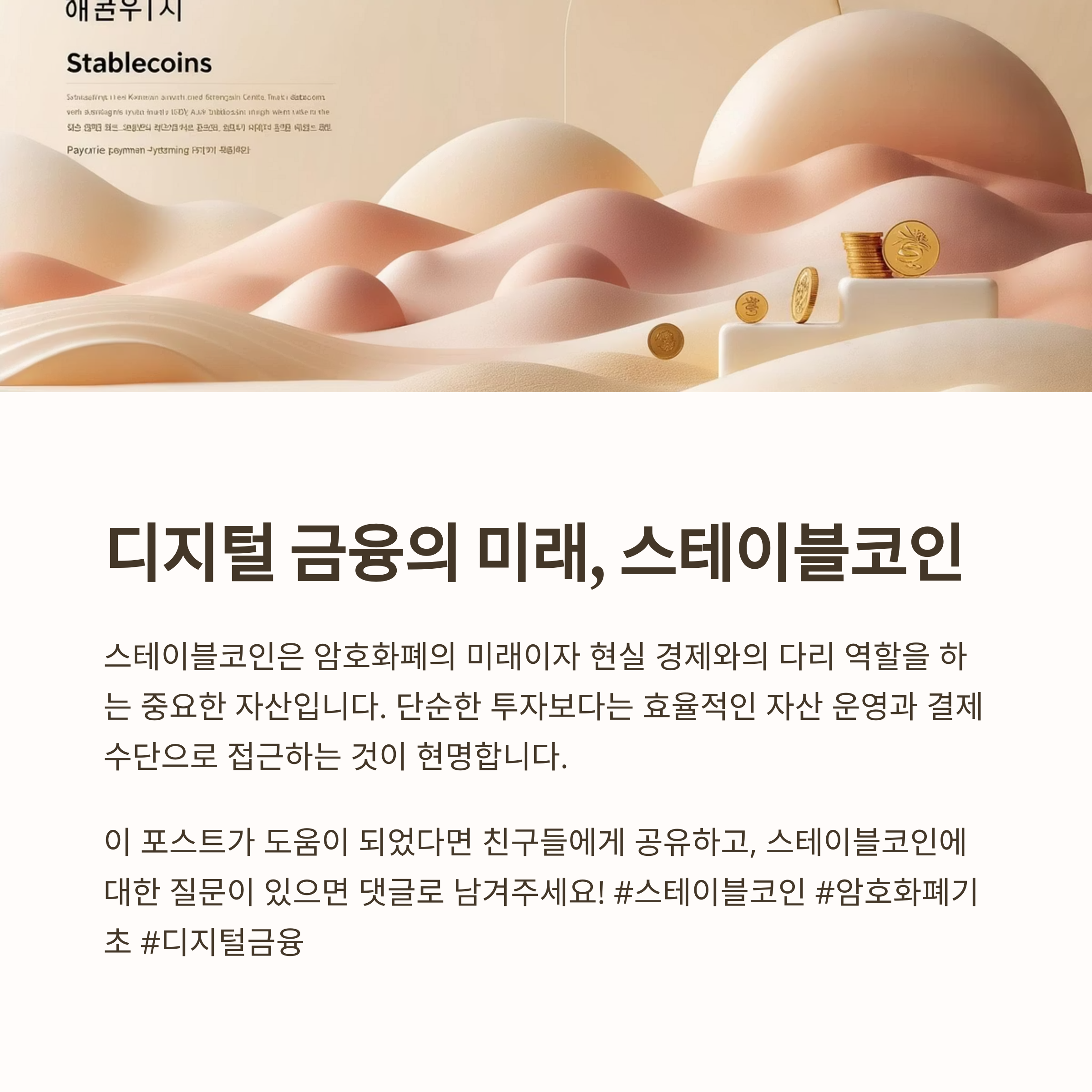 스테이블코인은 암호화폐의 미래이자 현실 경제와의 다리 역할을 해줄 중요한 자산입니다. 다만, 무작정 쓰기보다는 어떤 유형인지, 발행사가 신뢰할 만한지 꼭 체크하고 사용해야 해요. 단순한 투자보다 효율적인 자산 운영과 결제 수단으로 접근하는 게 가장 현명한 방법입니다. 앞으로 디지털 금융 시대, 스테이블코인 하나쯤은 알아두셔야겠죠?