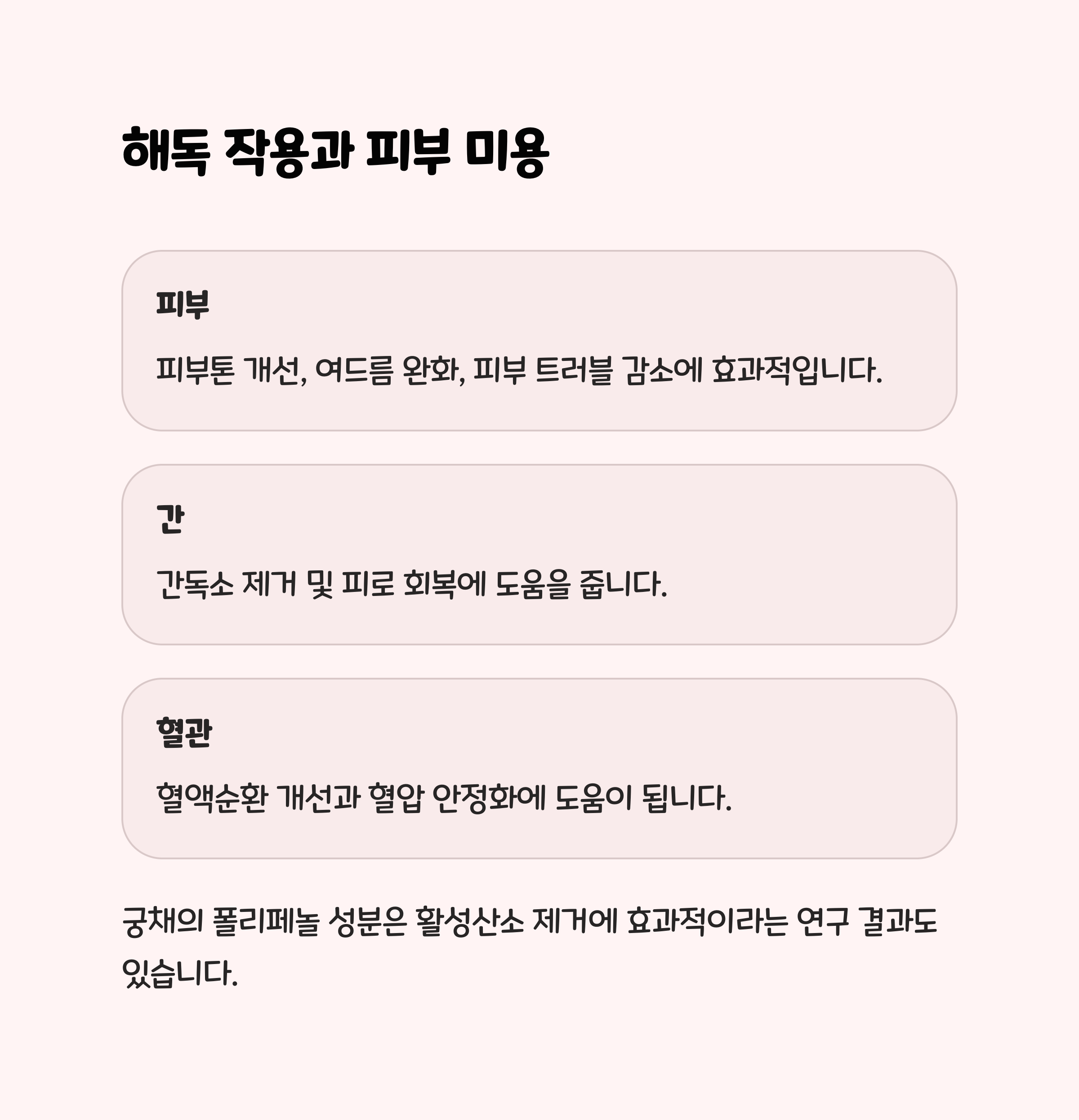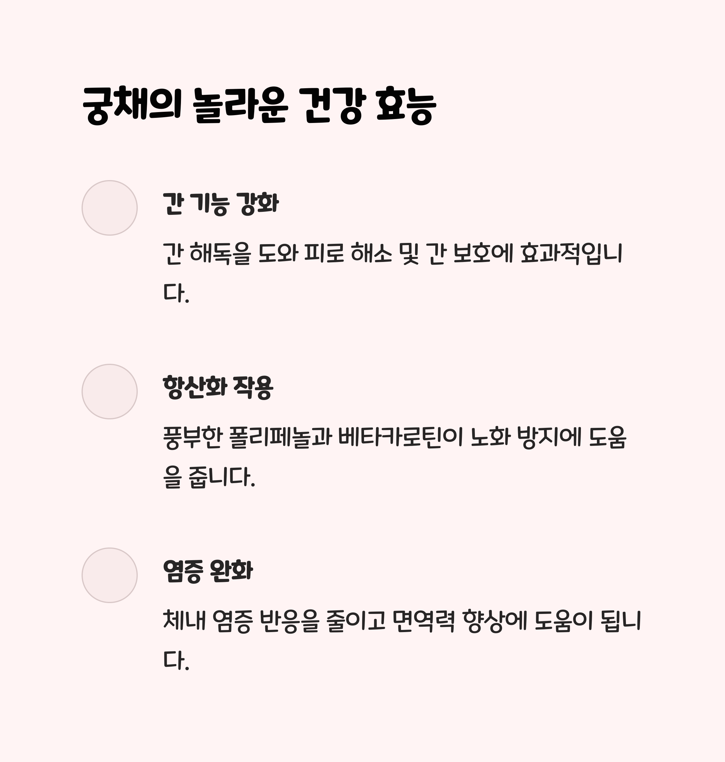 | 염증 완화 | 몸 안의 염증 반응을 줄이고 면역력 향상 |