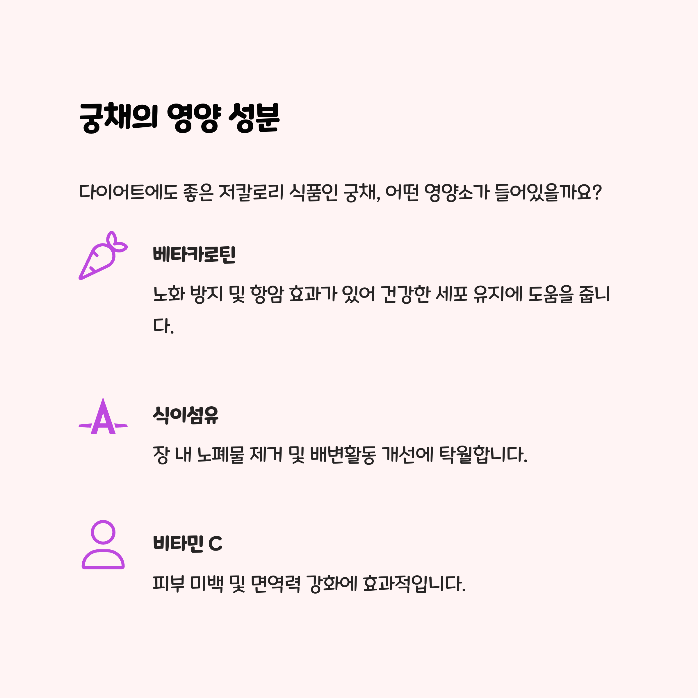 또 한 가지! 궁채는 위 점막 보호에도 효과가 있어요. 위산 분비를 조절해 위염이나 속쓰림 예방에도 도움이 된다고 알려져 있죠.